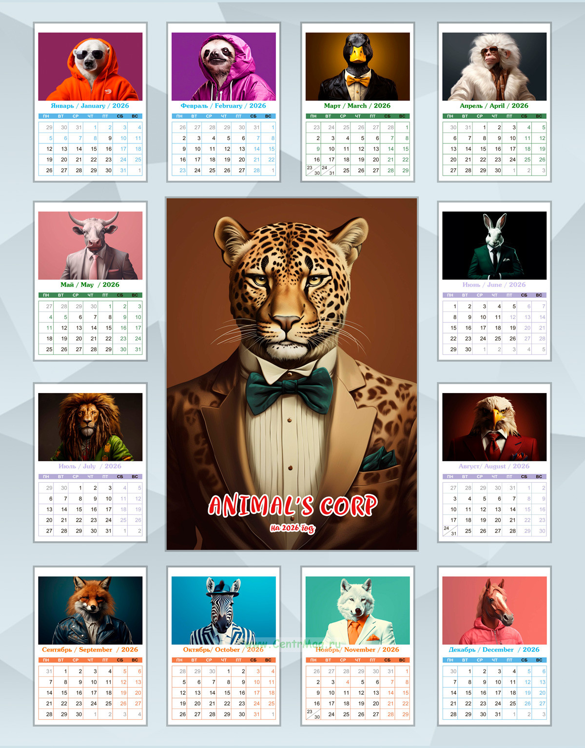 Календарь настенный, перекидной "Animal’s Corp" на 2026 год (550 руб.)
