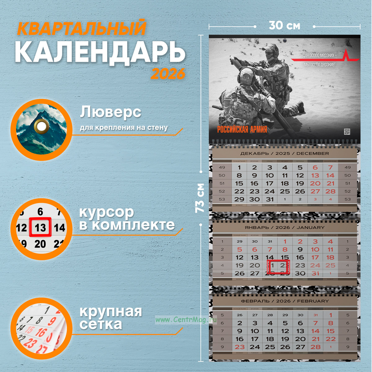 Календарь квартальный "Российская Армия" на 2026 год (надпись: Прицел тоже является чьей-то точкой зрения) (660 руб.)