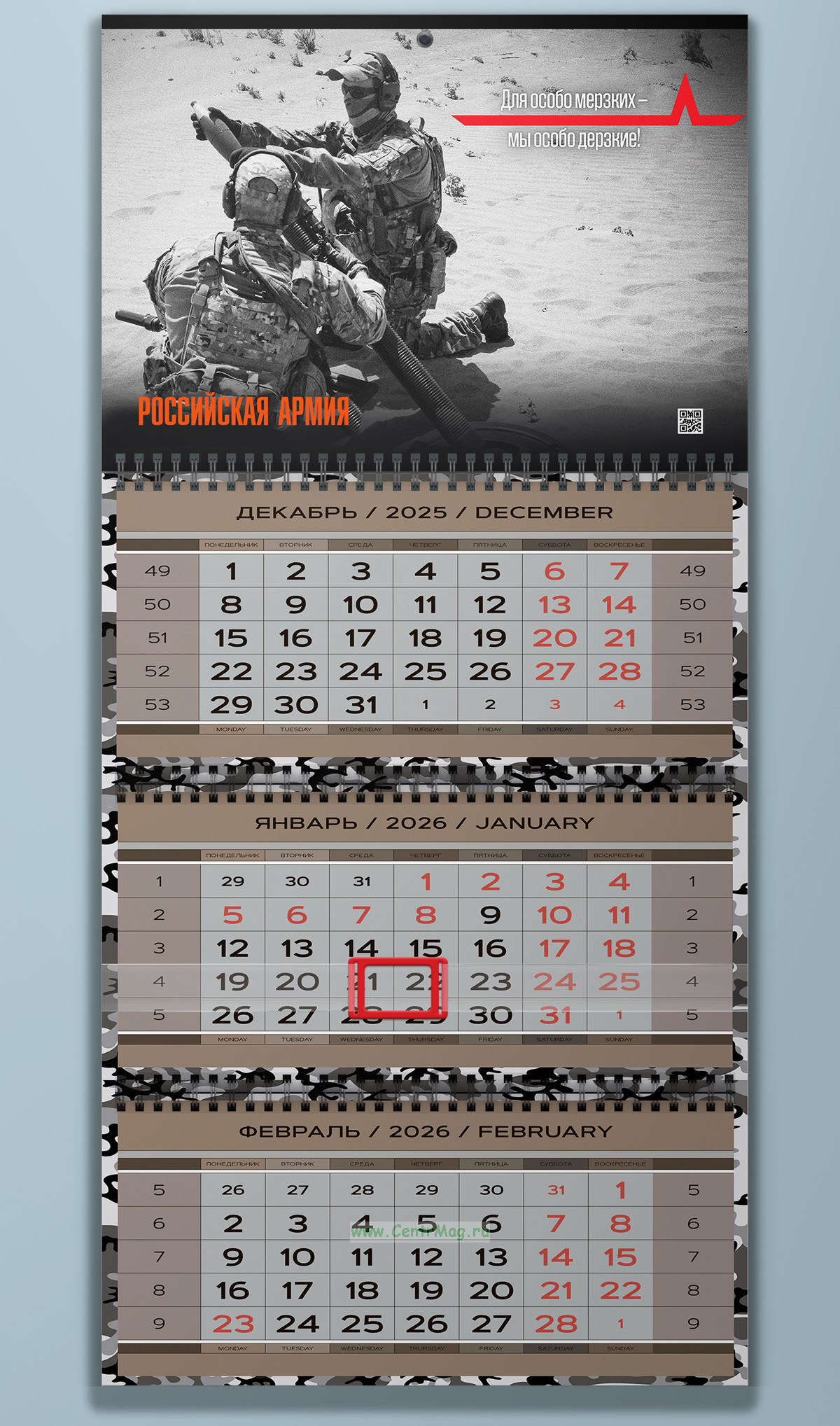 Календарь квартальный "Российская Армия" на 2026 год (надпись: Берем того, кто может, а не того, кто хочет) (660 руб.)
