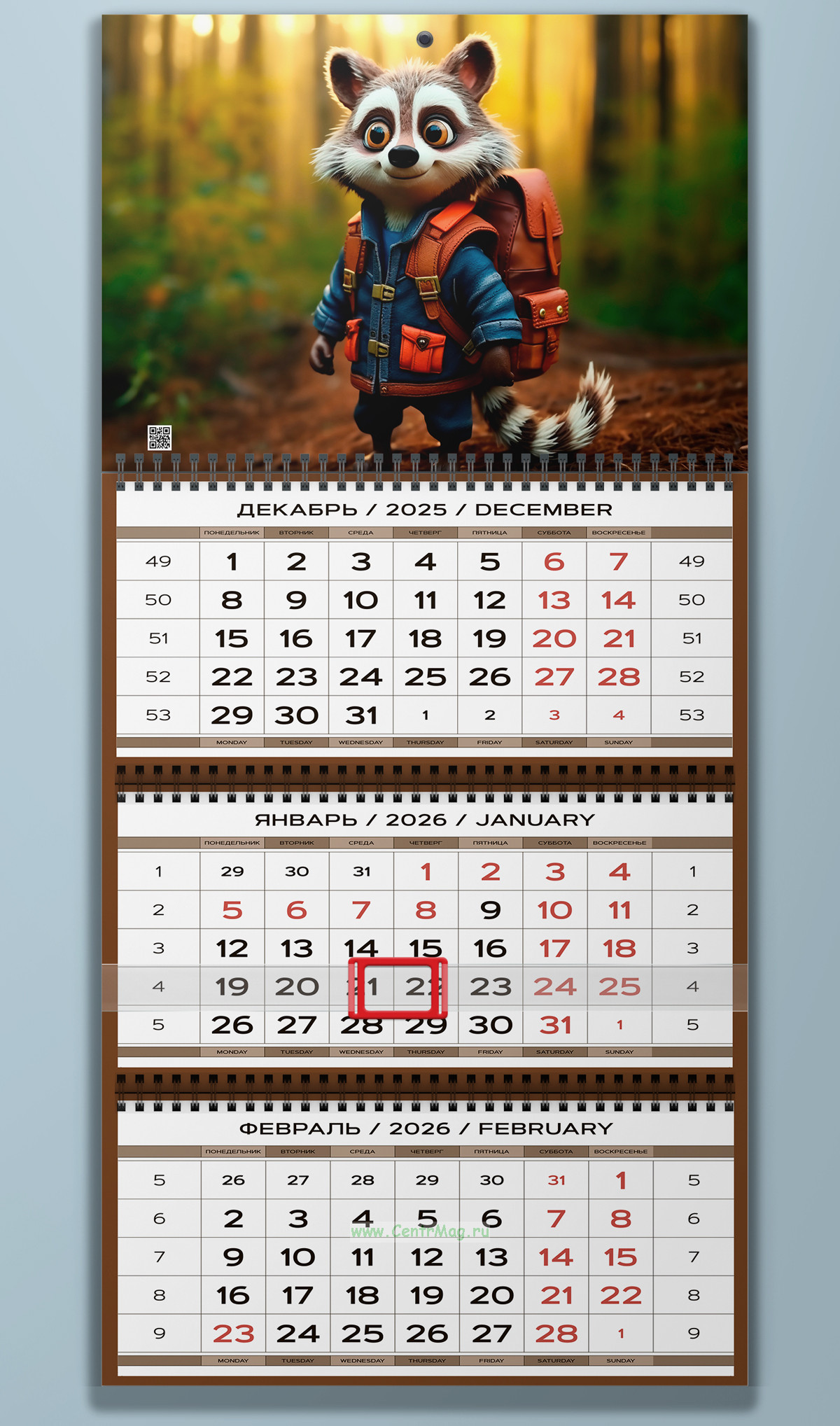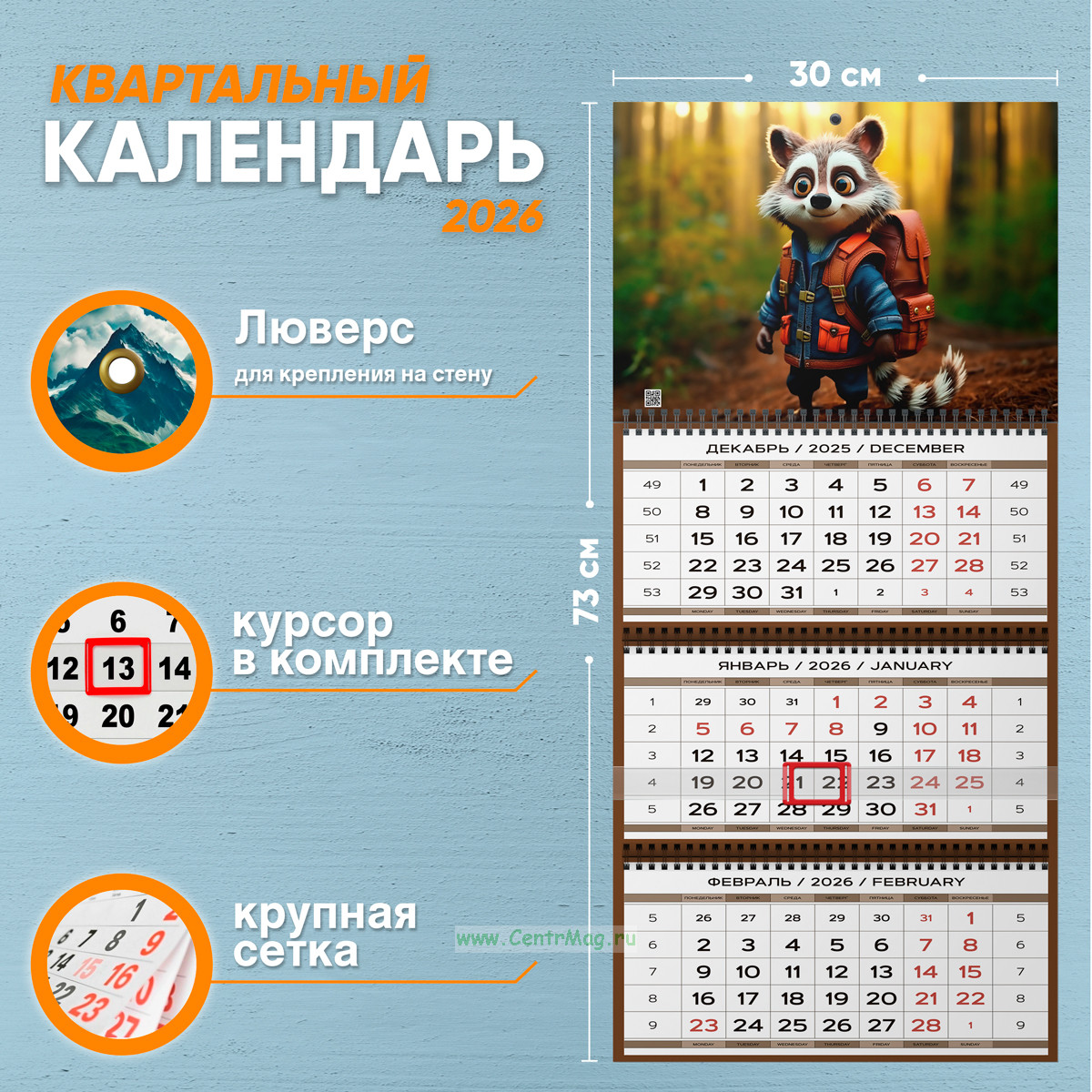 Календарь квартальный "Енот - путешественник" на 2026 год