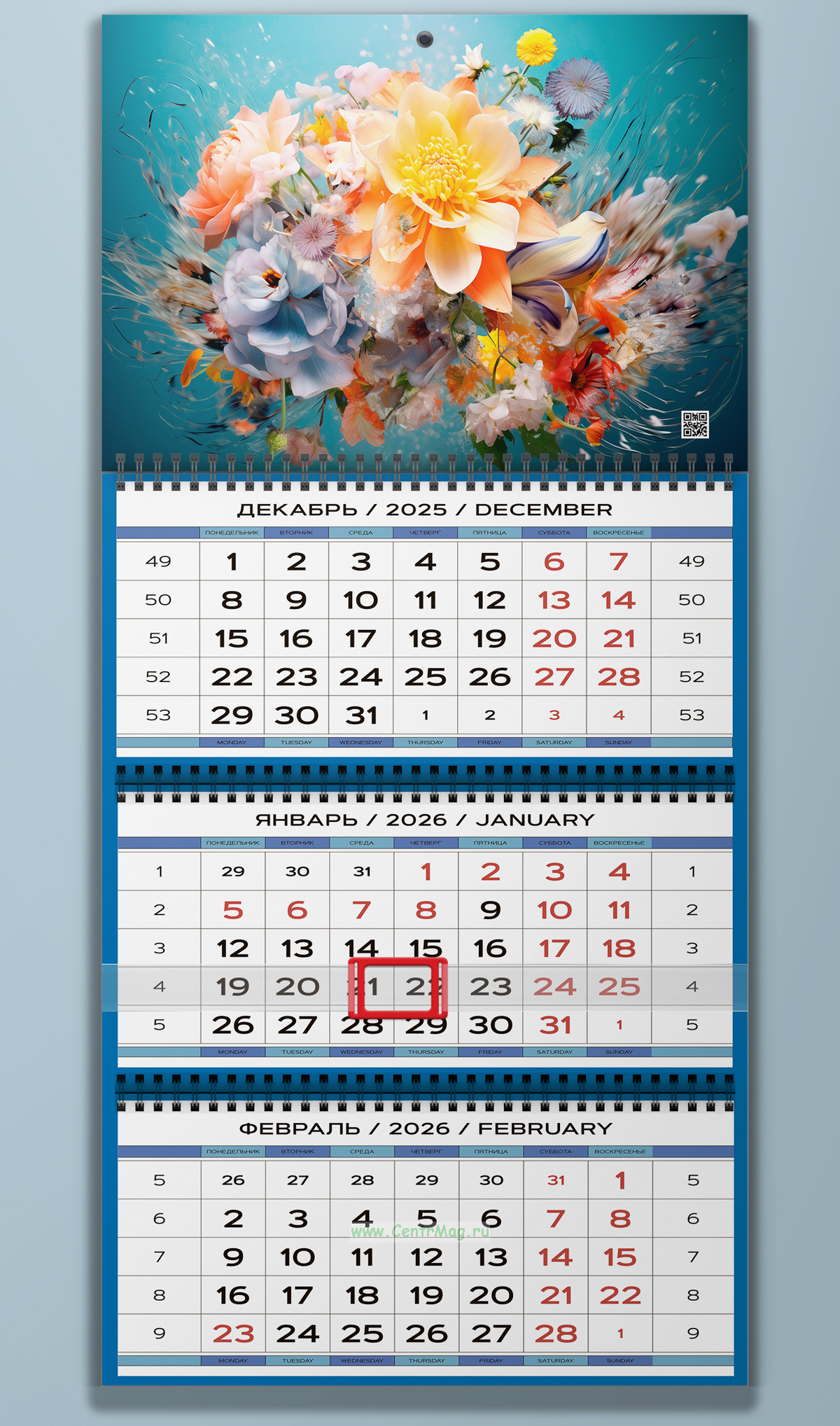 Календарь квартальный "Живопись. Яркие хризантемы" на 2026 год (660 руб.)