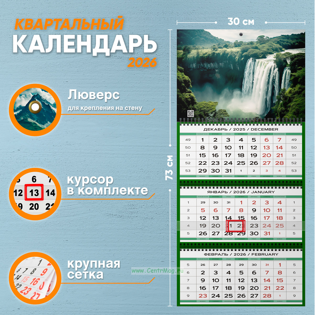 Календарь квартальный "Удивительный водопад" на 2026 год