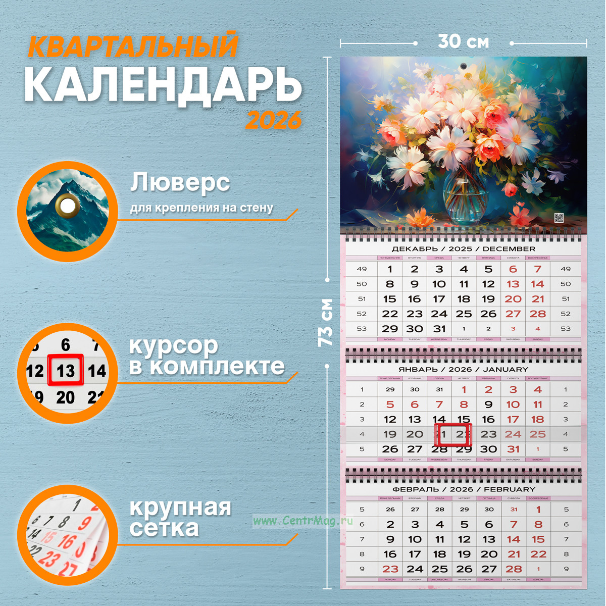 Календарь квартальный "Ваза с ромашками" на 2026 год
