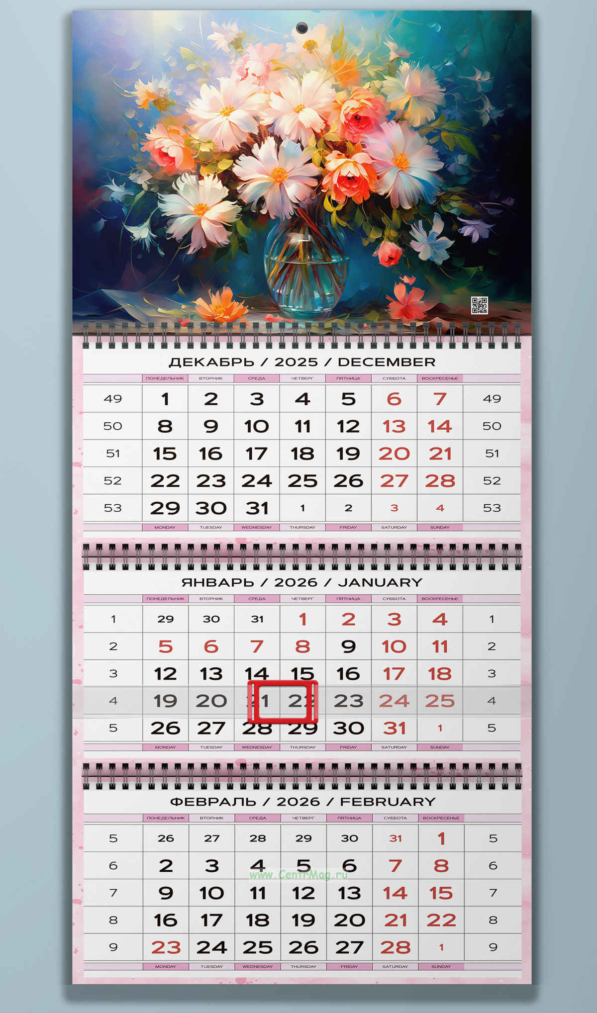 Календарь квартальный "Живопись. Розовые пионы" на 2026 год (660 руб.)