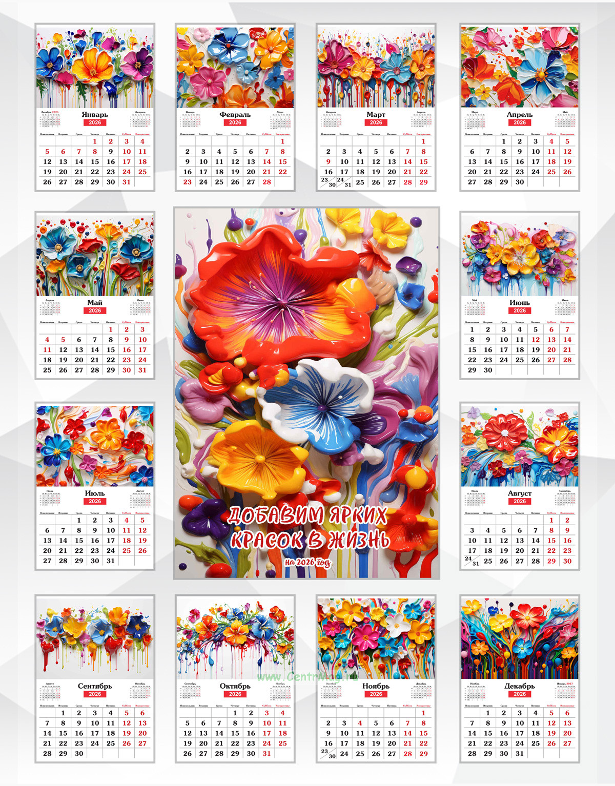 Календарь настенный, перекидной "Добавим ярких красок в жизнь" на 2026 год
