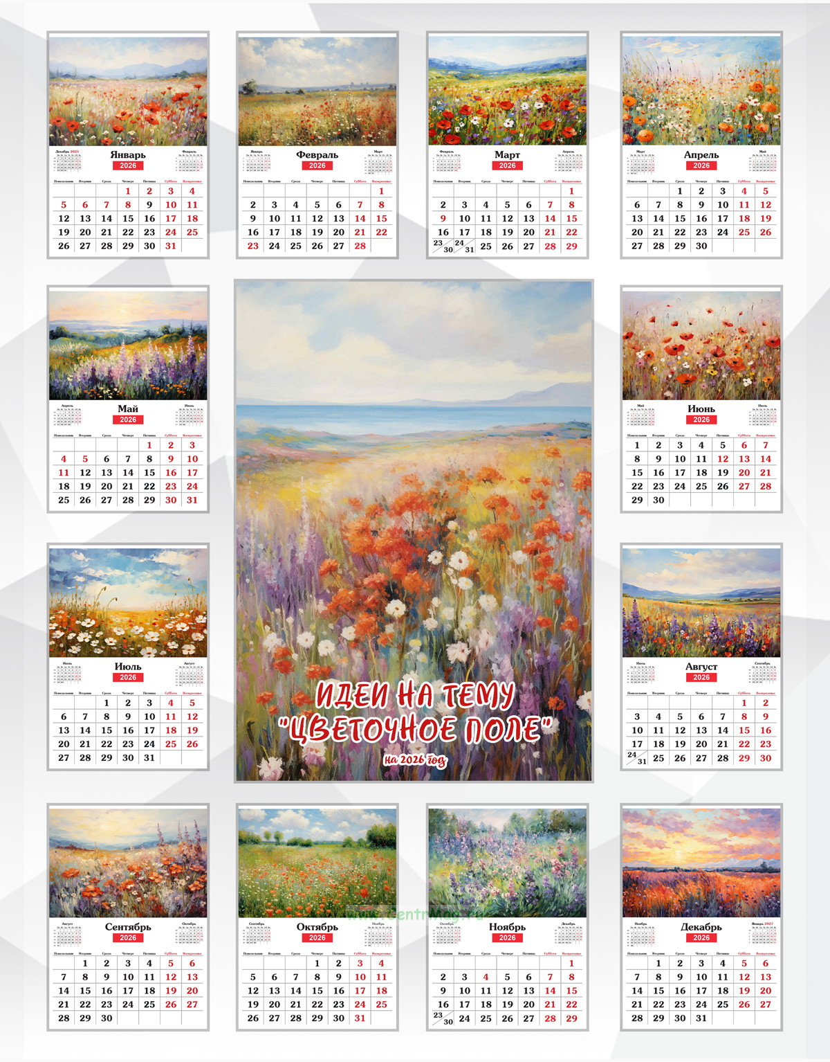 Календарь настенный, перекидной "Идеи на тему "Цветочное поле"" на 2026 год