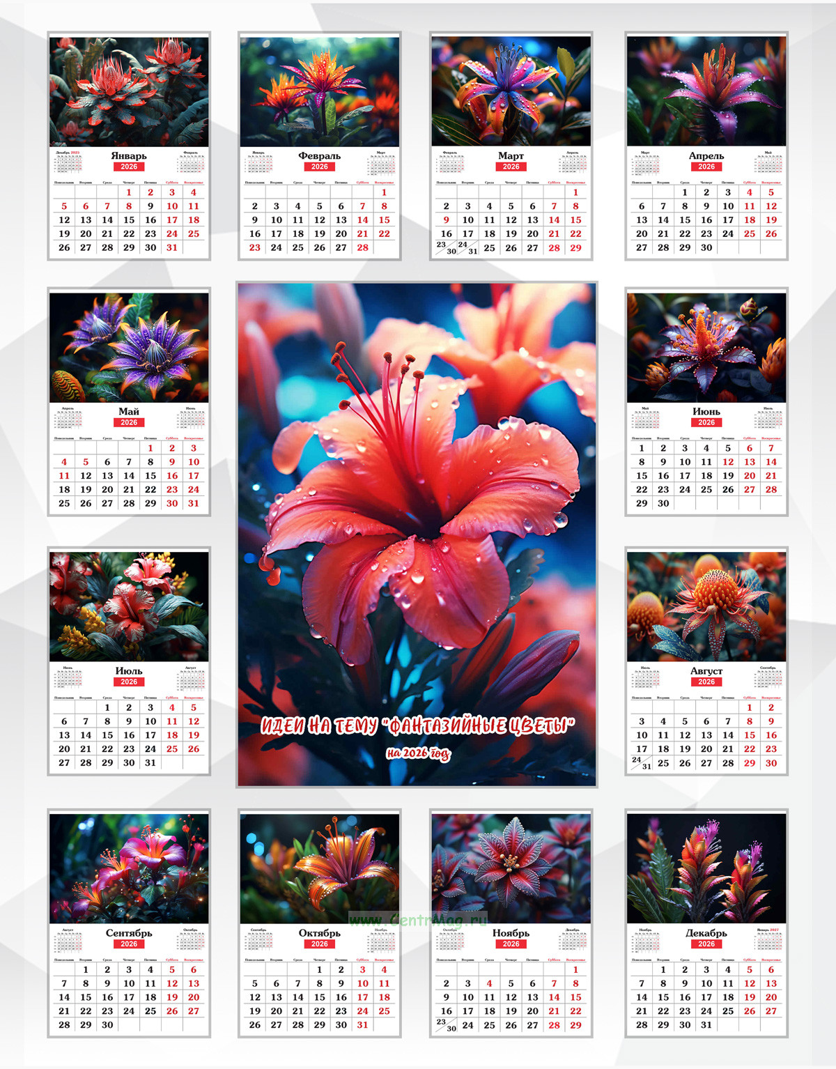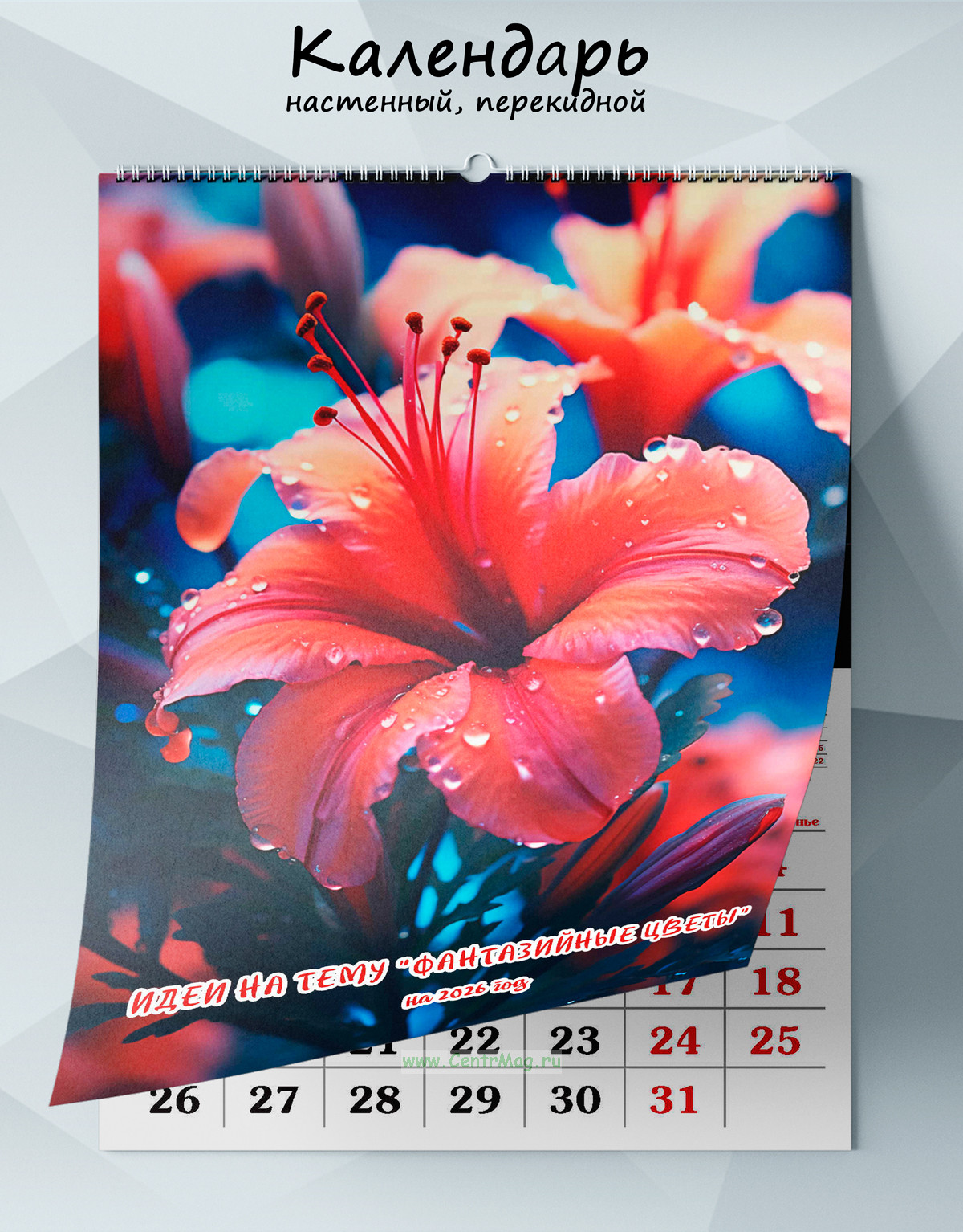 Календарь настенный, перекидной "Идеи на тему "Фантазийные цветы"" на 2026 год