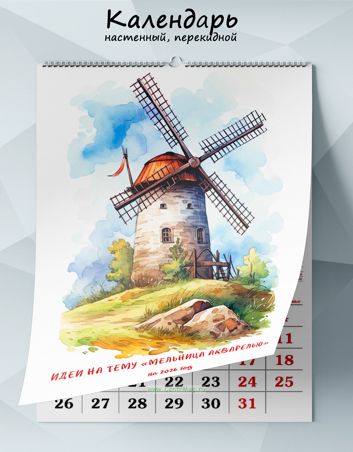 Календарь настенный, перекидной "Идеи на тему "Мельница акварелью"" на 2026 год