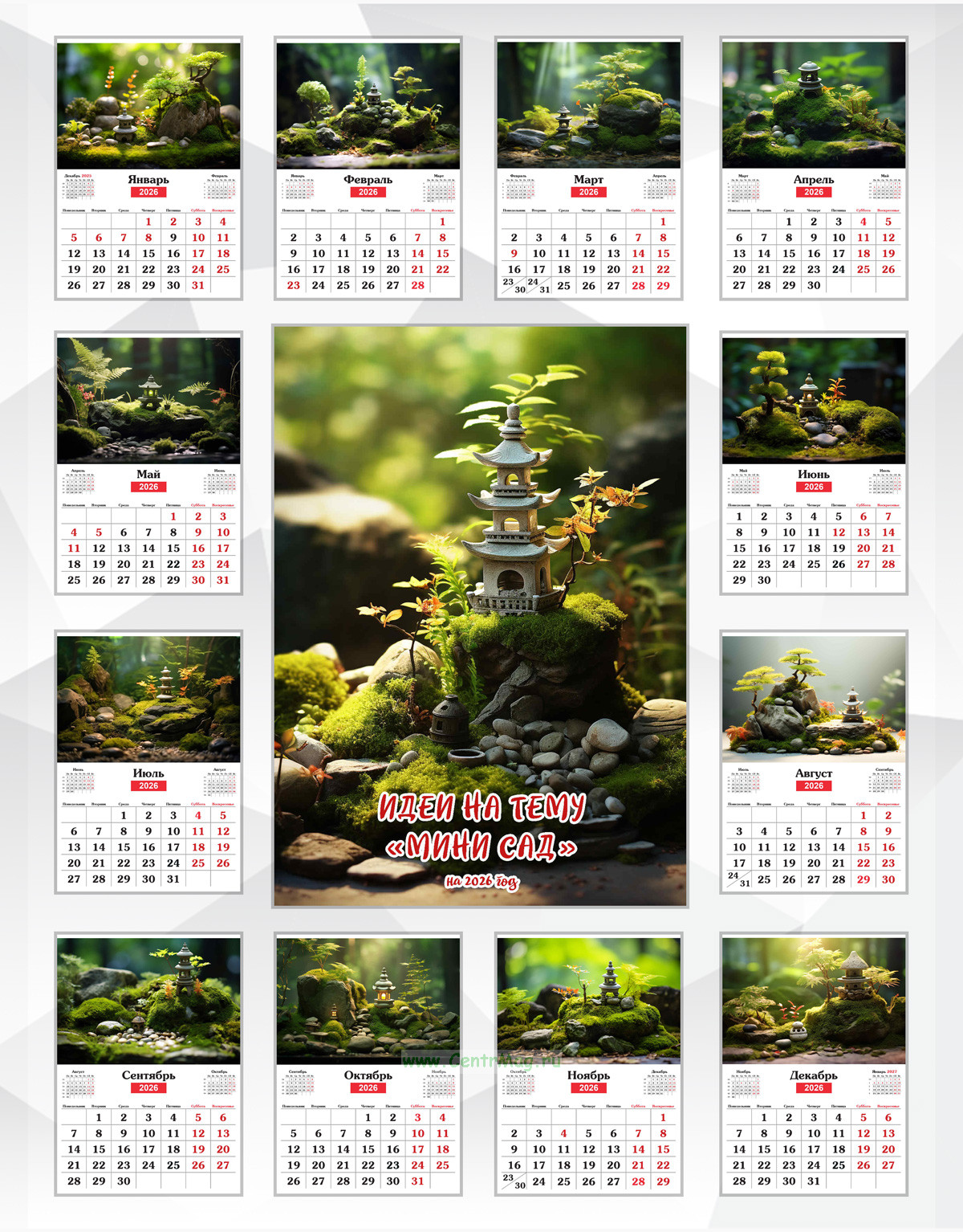 Календарь содержит очаровательные изображения мини садов. Обложка нарисована с помощью искусственного интеллекта. Мы подготовили для вас прекрасных 12 иллюстраций.