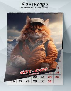 Календарь содержит забавные изображения кота-скуфа. Иллюстрации созданы с помощью искусственного интеллекта. Идеально подойдет в качестве подарка друзьям, родственникам или даже себе.
