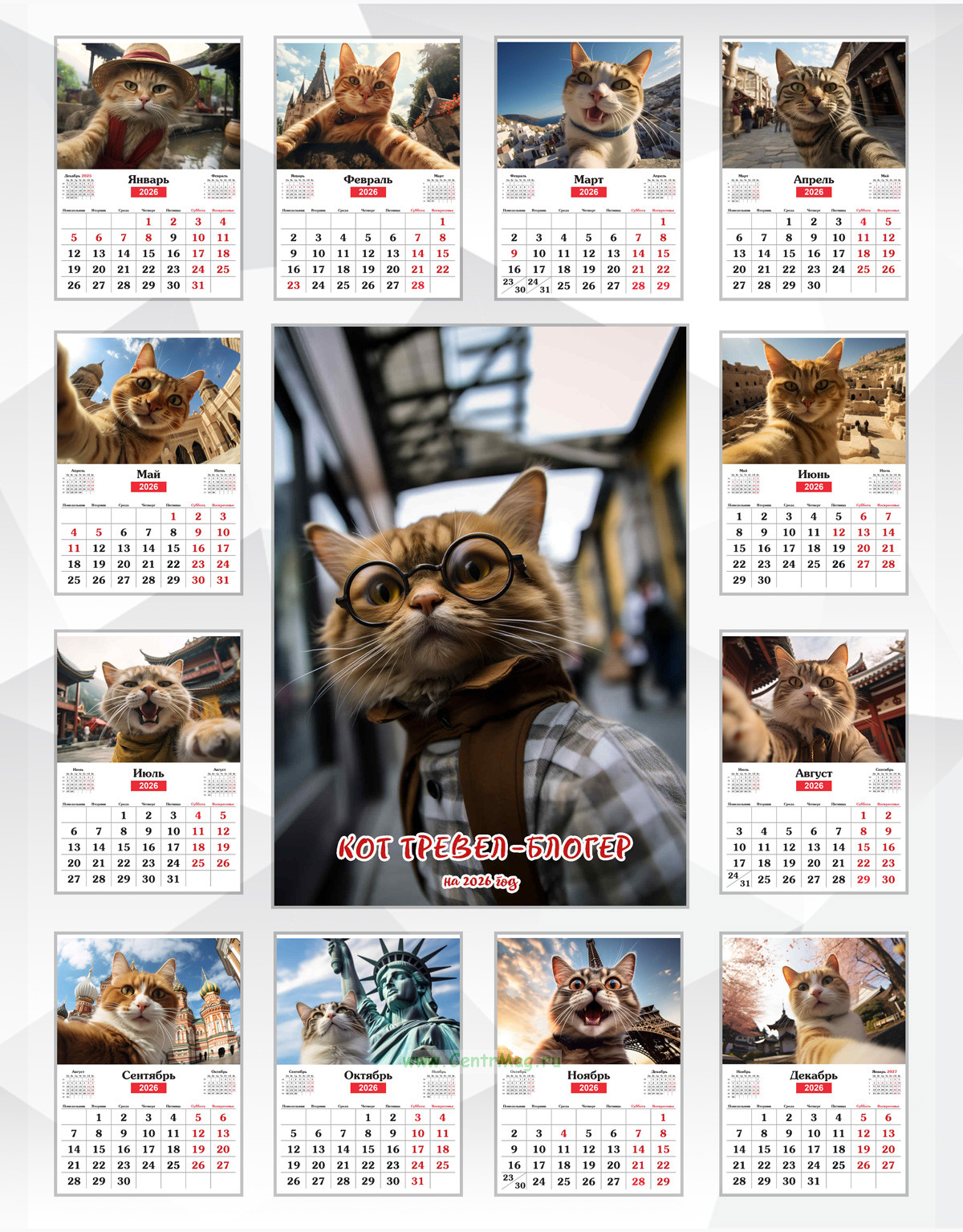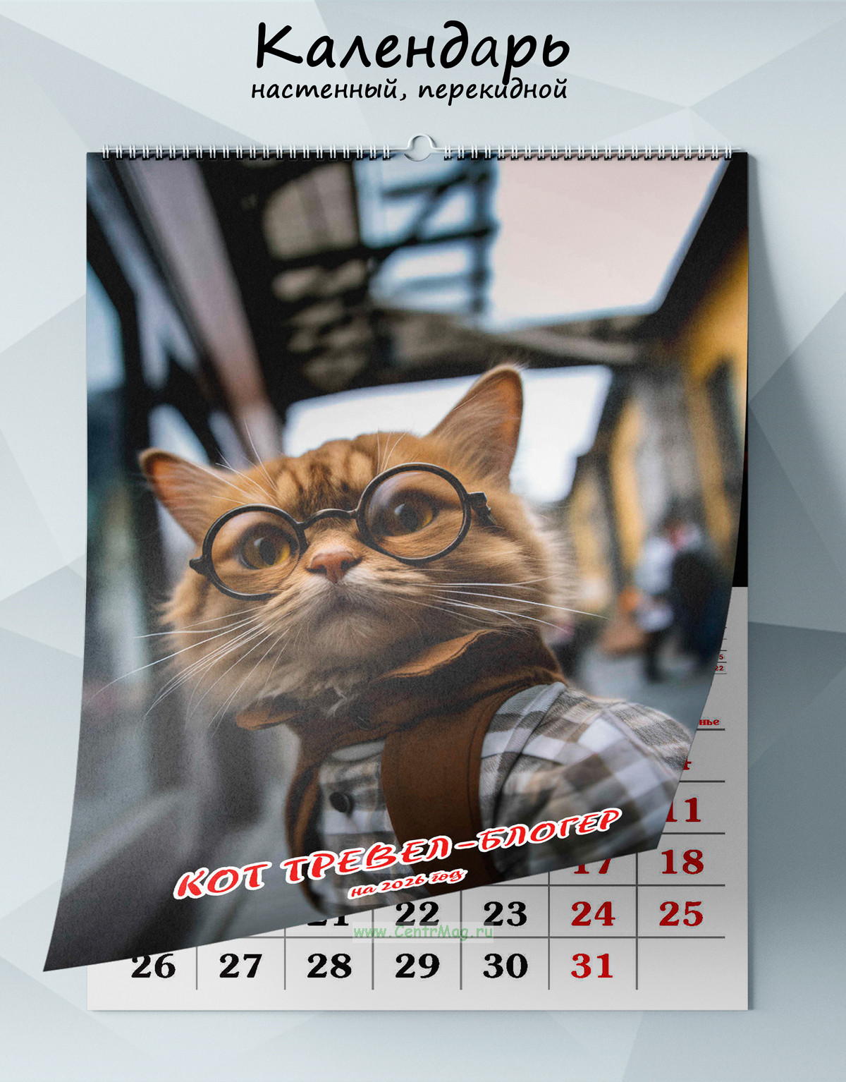 Календарь настенный, перекидной "Кот тревел-блогер" на 2026 год