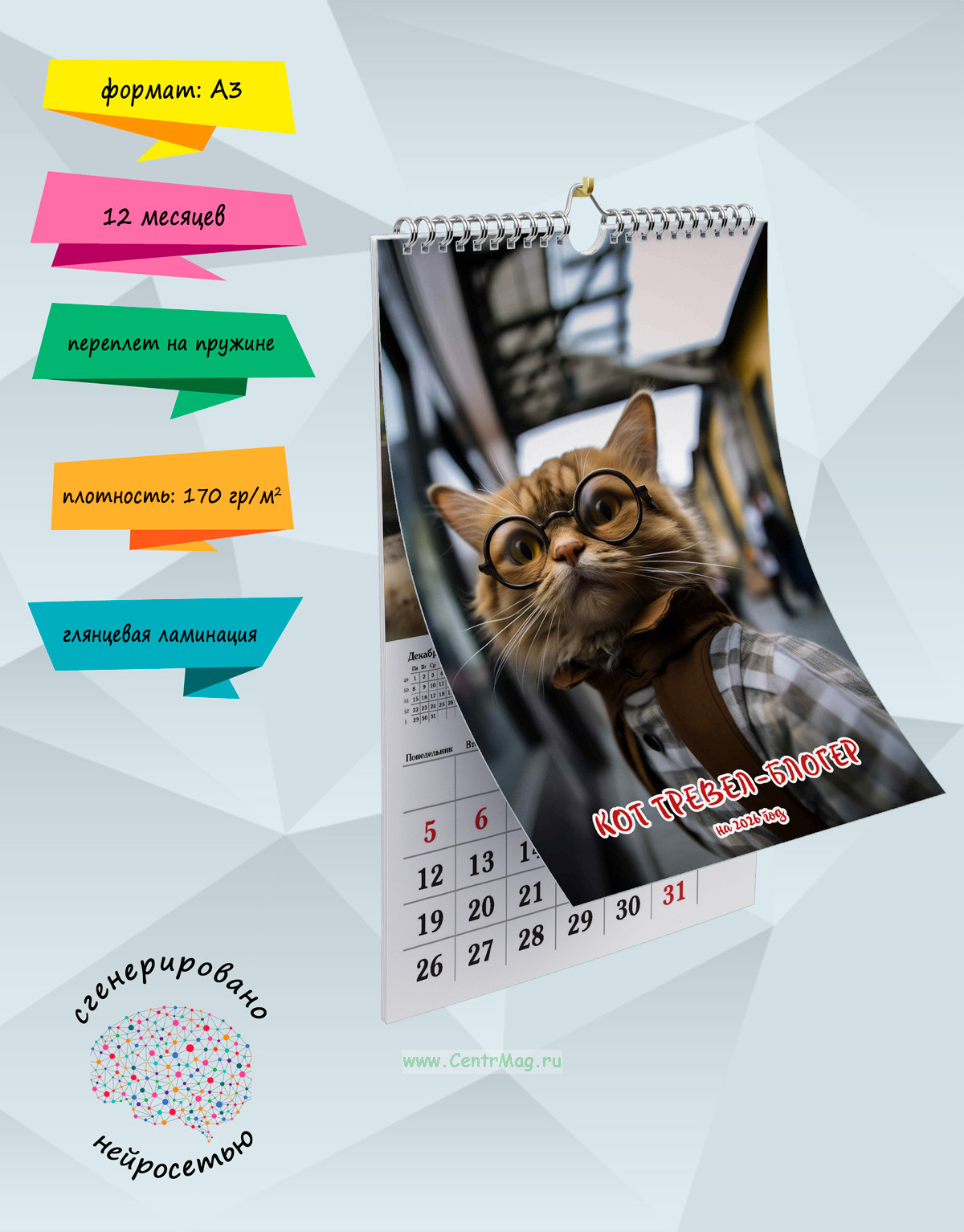 Календарь содержит изображения забавных котиков. Иллюстрации созданы с помощью искусственного интеллекта. Идеально подойдет в качестве подарка себе или близким