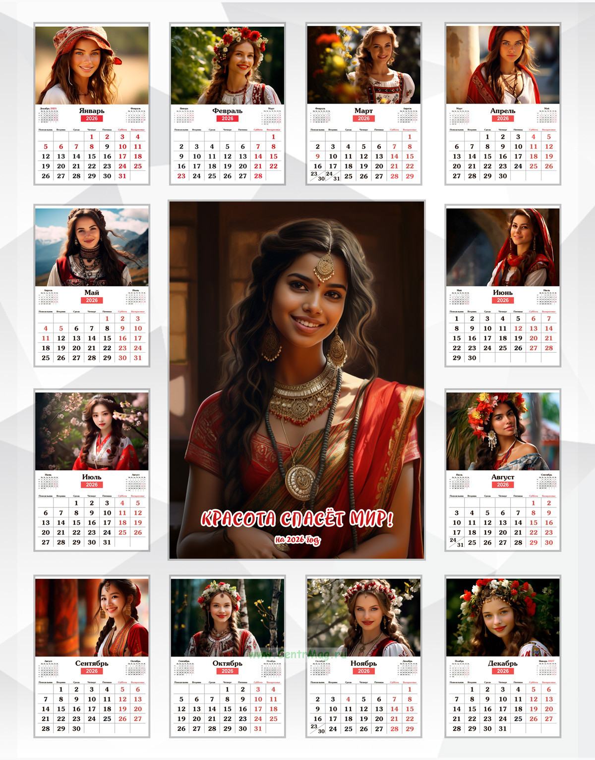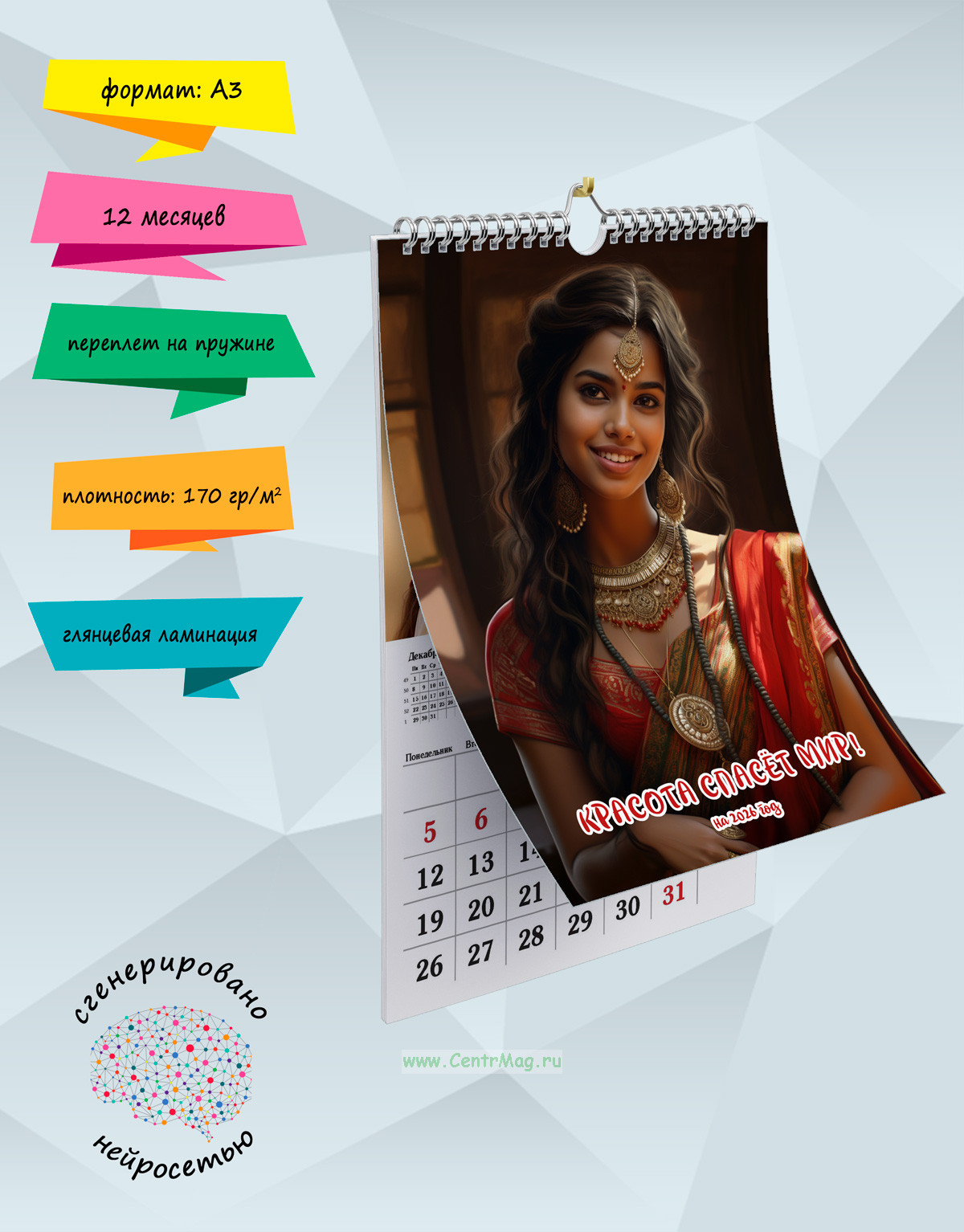 Календарь содержит очаровательные изображения женщин мира. Иллюстрации созданы с помощью искусственного интеллекта. Идеально подойдет в качестве подарка друзьям, родственникам или даже себе.