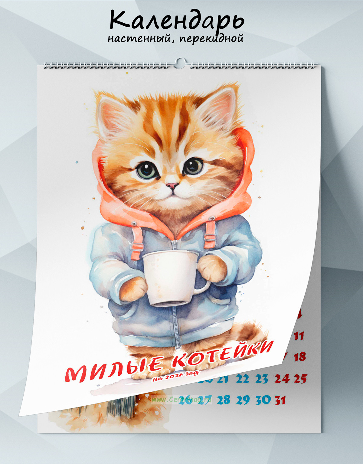 Календарь настенный, перекидной "Милые котейки" на 2026 год