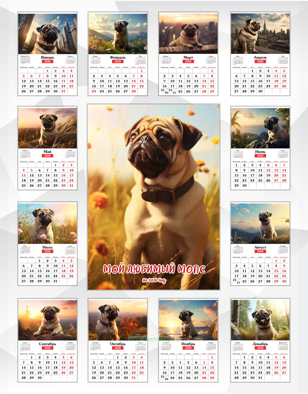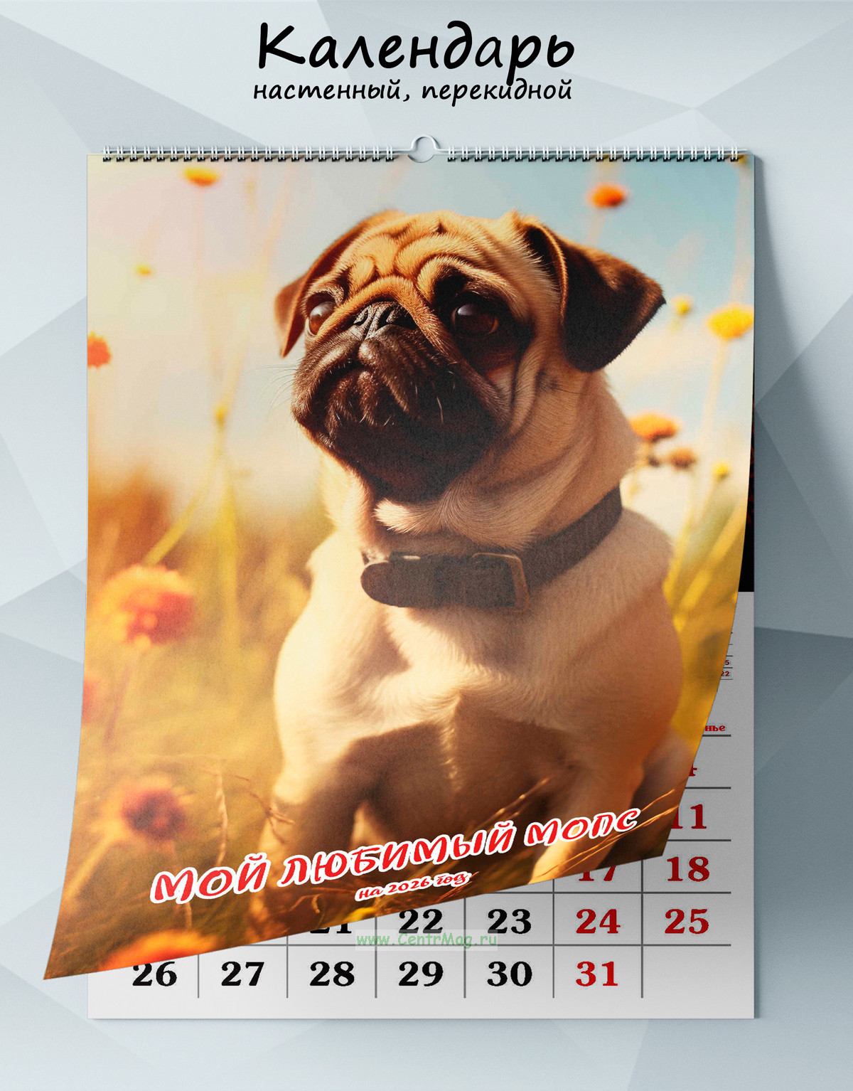 Календарь настенный, перекидной "Мой любимый мопс" на 2026 год