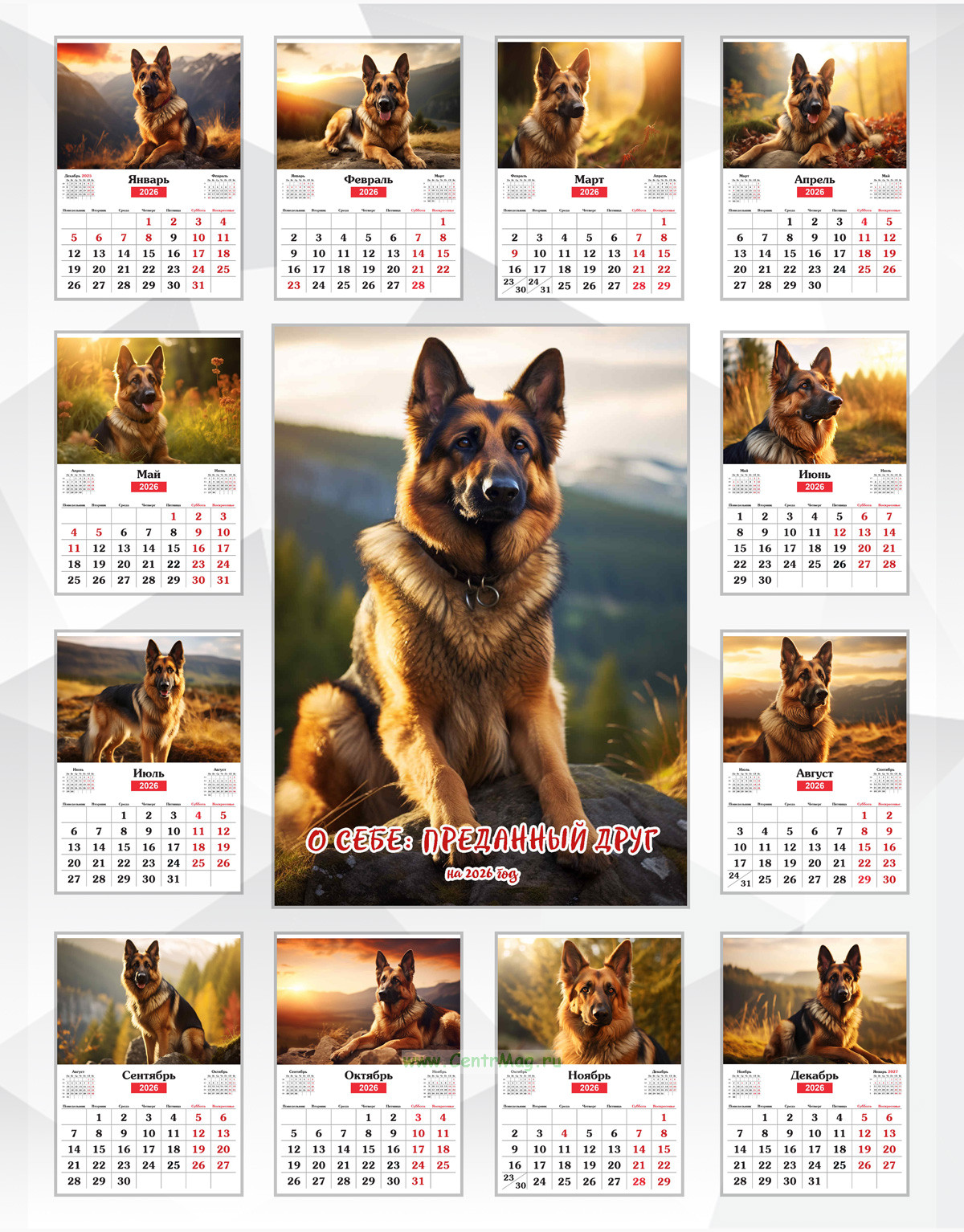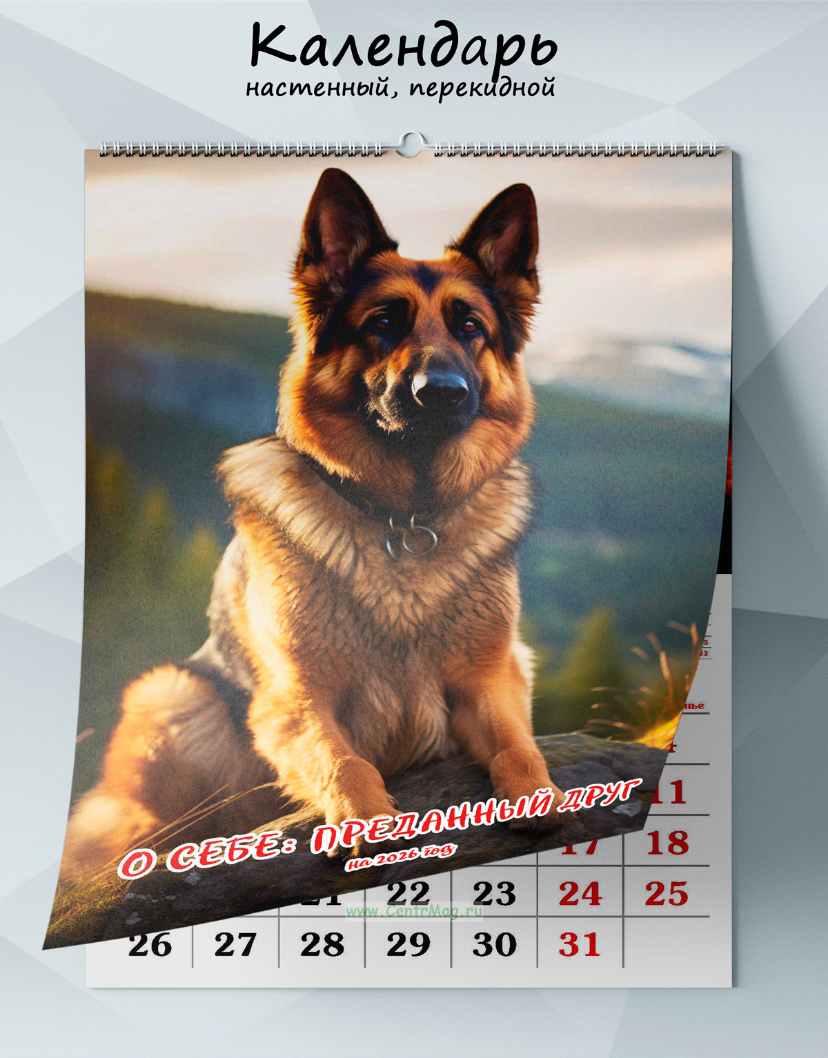 Календарь настенный, перекидной "Идеи на тему "Овчарка. Акварель"" на 2026 год (550 руб.)
