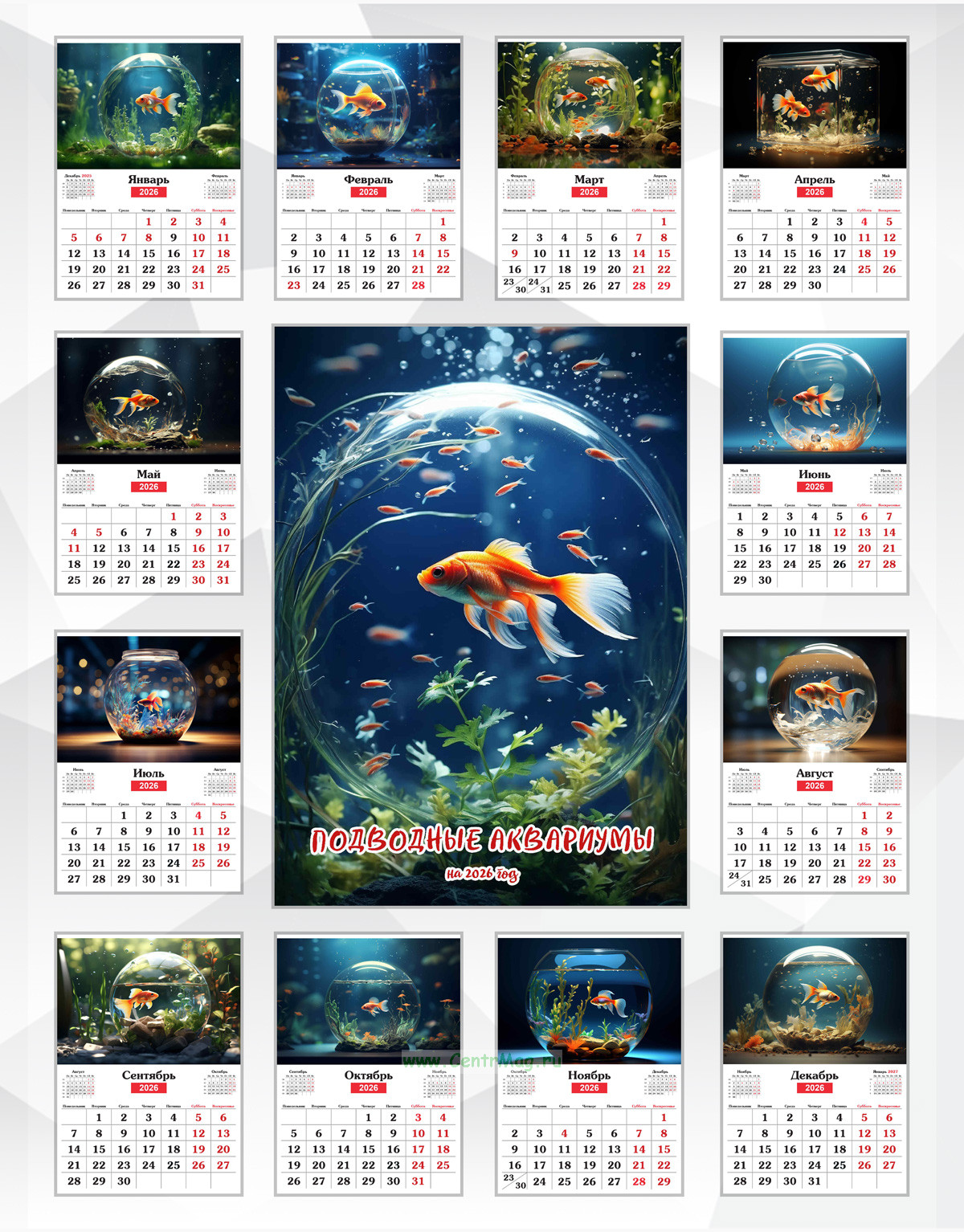 Календарь настенный, перекидной "Подводные аквариумы" на 2026 год