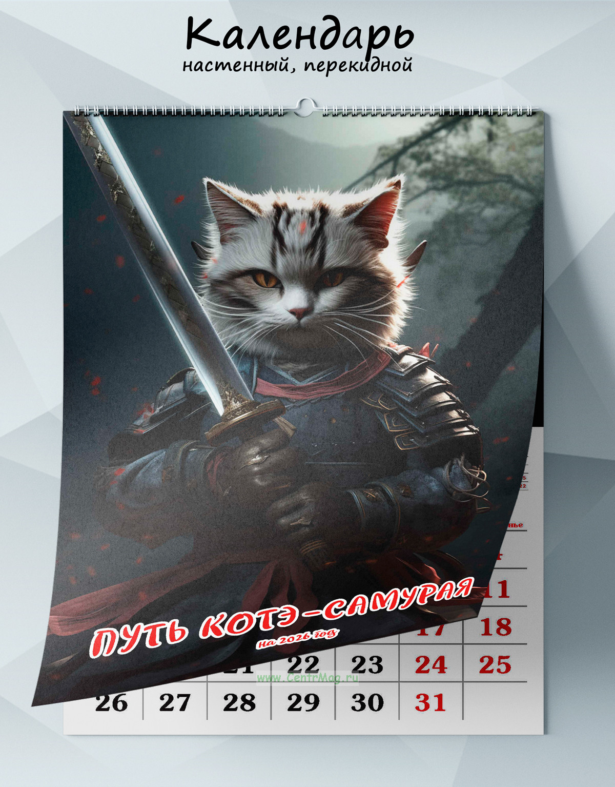 Календарь настенный, перекидной "Путь котэ-самурая" на 2026 год