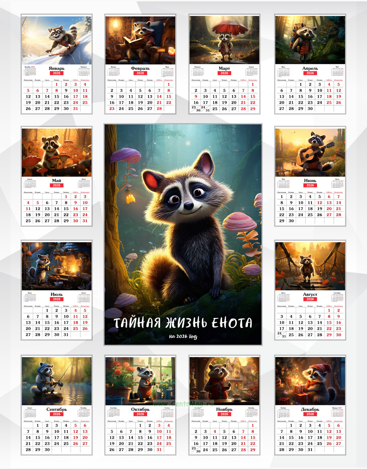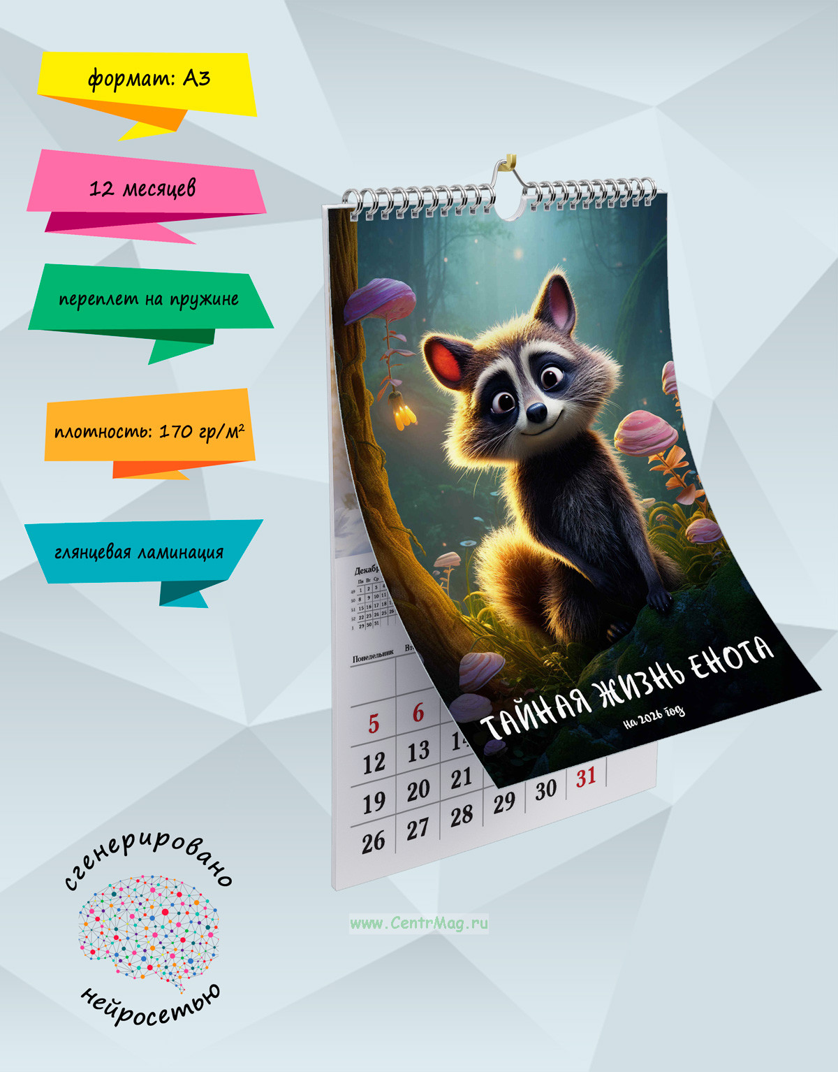 Календарь настенный, перекидной "Тайная жизнь енота" на 2026 год