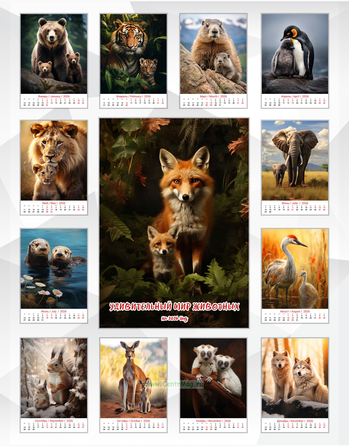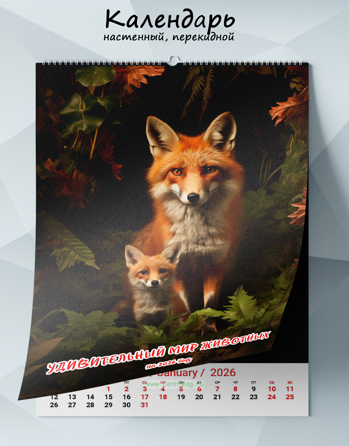 Календарь настенный, перекидной "Удивительный мир животных" на 2026 год