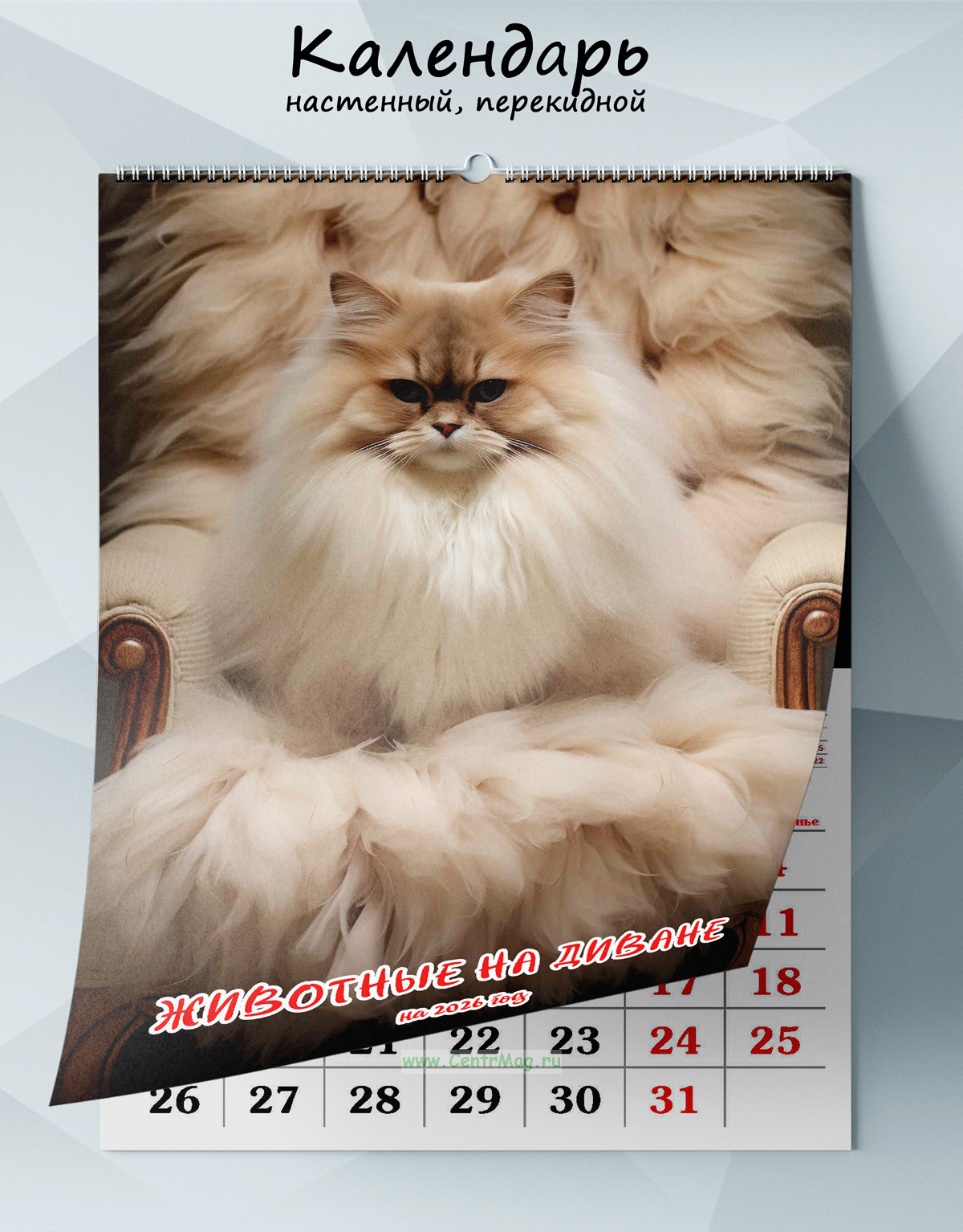 Календарь настенный, перекидной "Животные на диване" на 2026 год