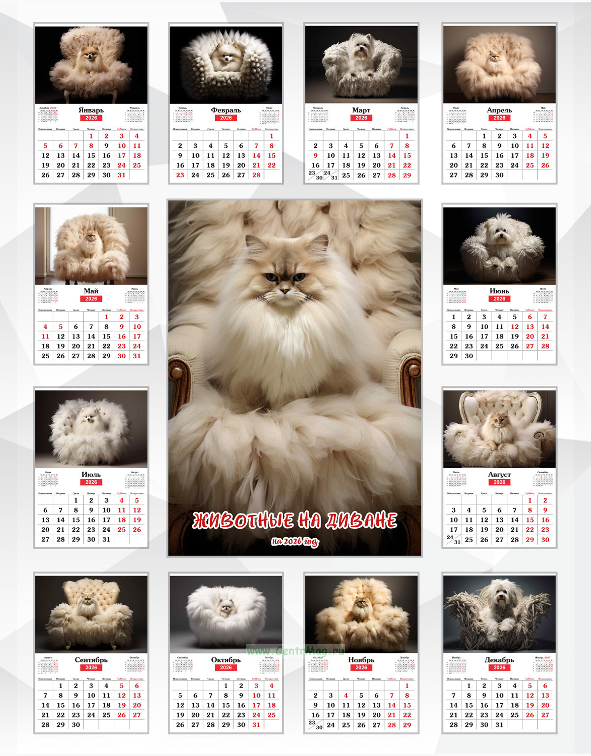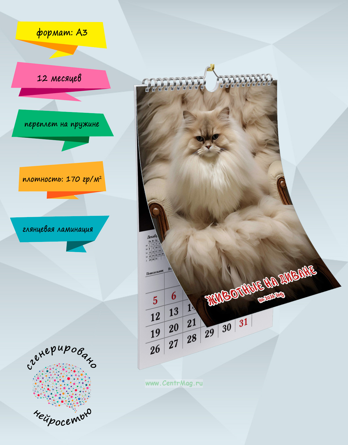 Календарь содержит завораживающие изображения животных в креслах. Обложка нарисована с помощью искусственного интеллекта. Мы подготовили для вас 12 иллюстраций, от которых тяжело оторвать взгляд.