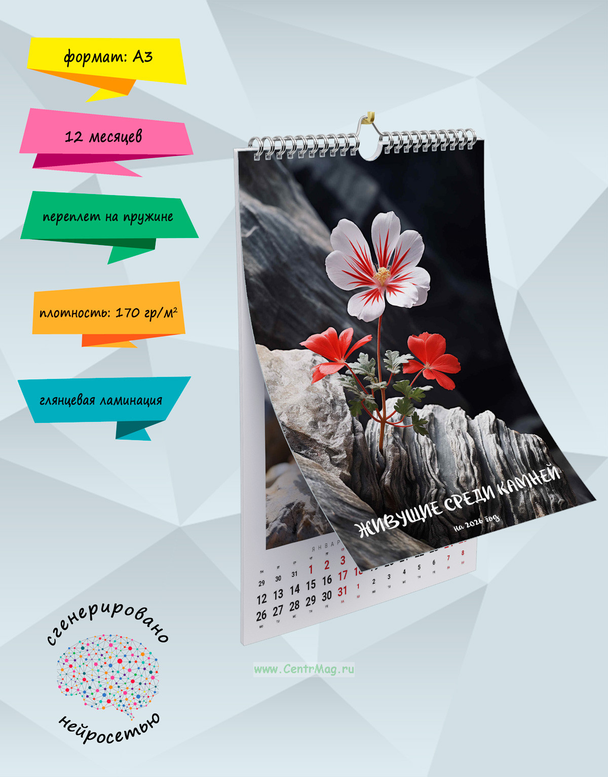 Календарь содержит завораживающие изображения цветов. Обложка нарисована с помощью искусственного интеллекта. Когда видишь цветок, проросший в асфальте, удивляешься этому чуду и радуешься, что растения сильнее камней и бетона. Мы подготовили для вас 12 иллюстраций, от которых тяжело оторвать взгляд.