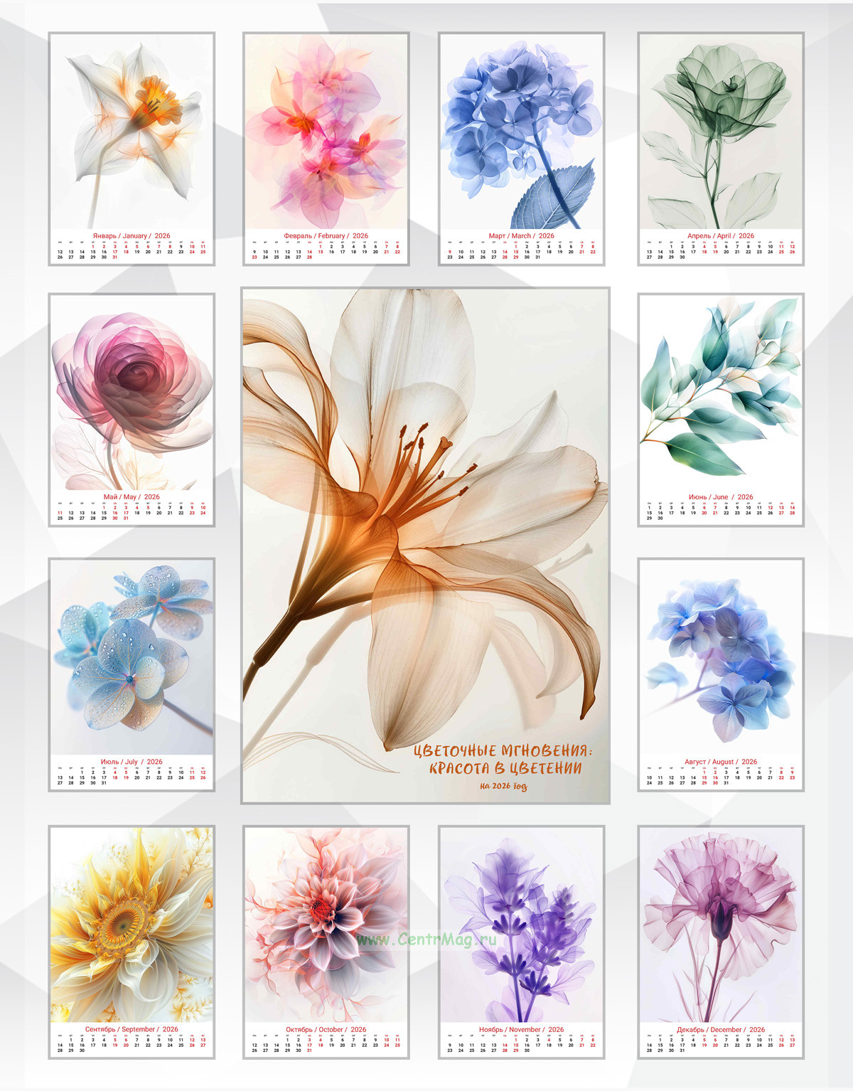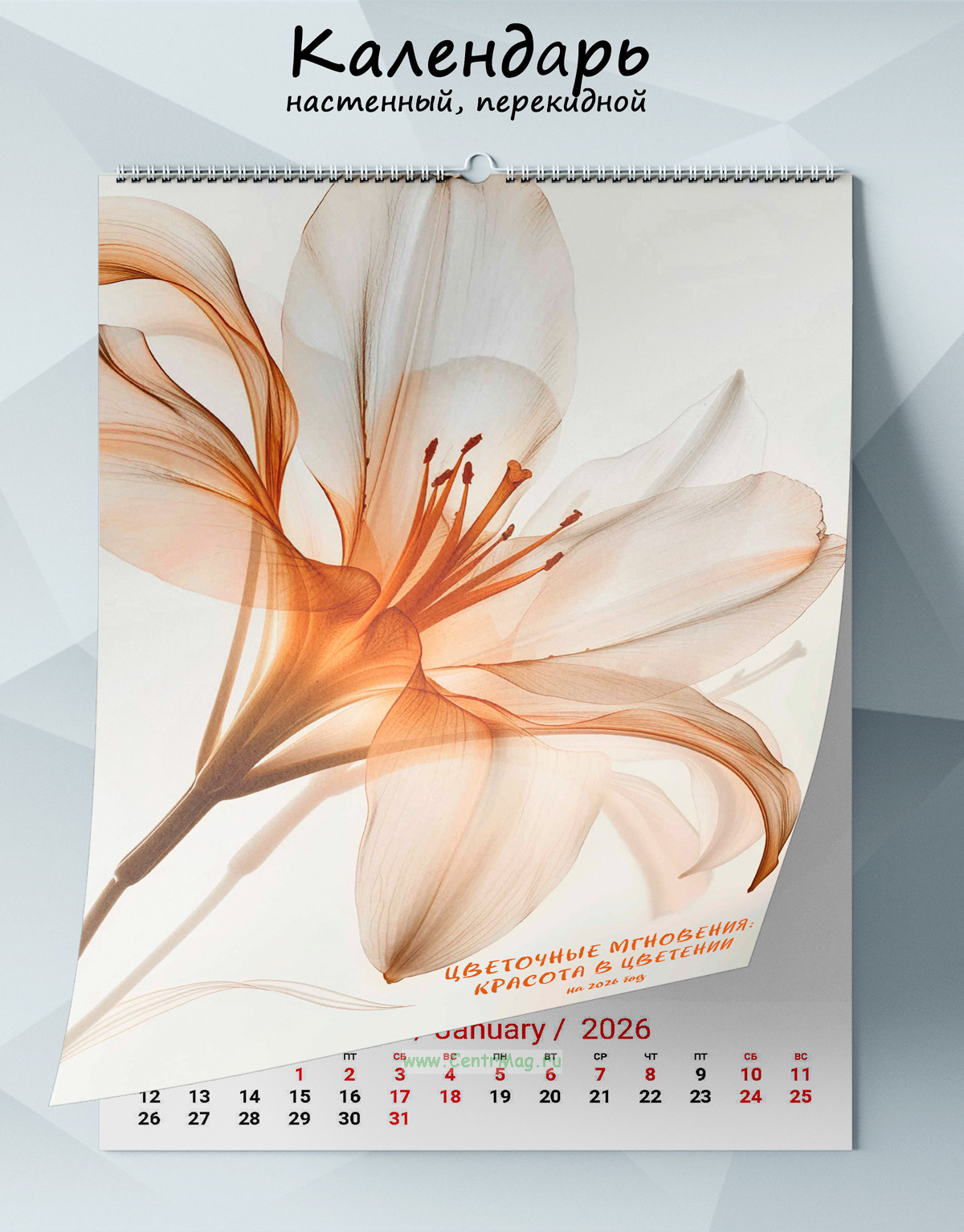 Календарь настенный, перекидной "Цветочные мгновения. Красота в цветении" на 2026 год
