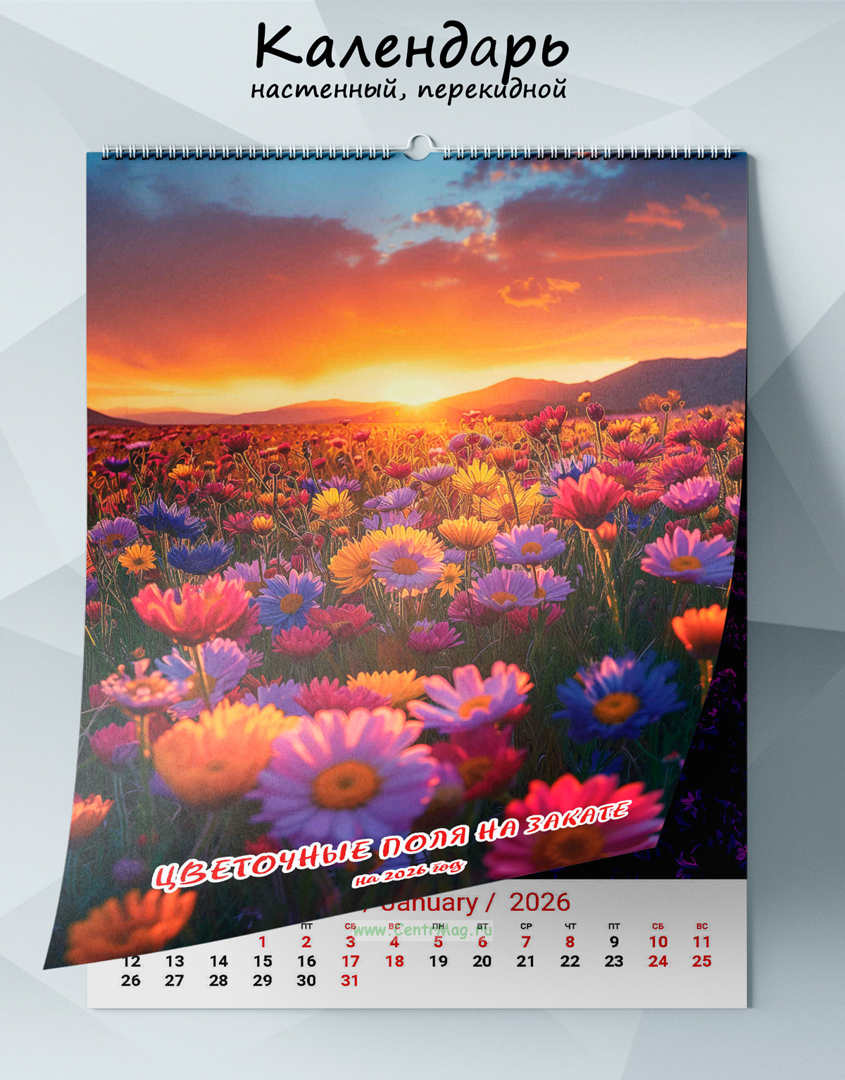 Календарь настенный, перекидной "Цветочные поля на закате" на 2026 год