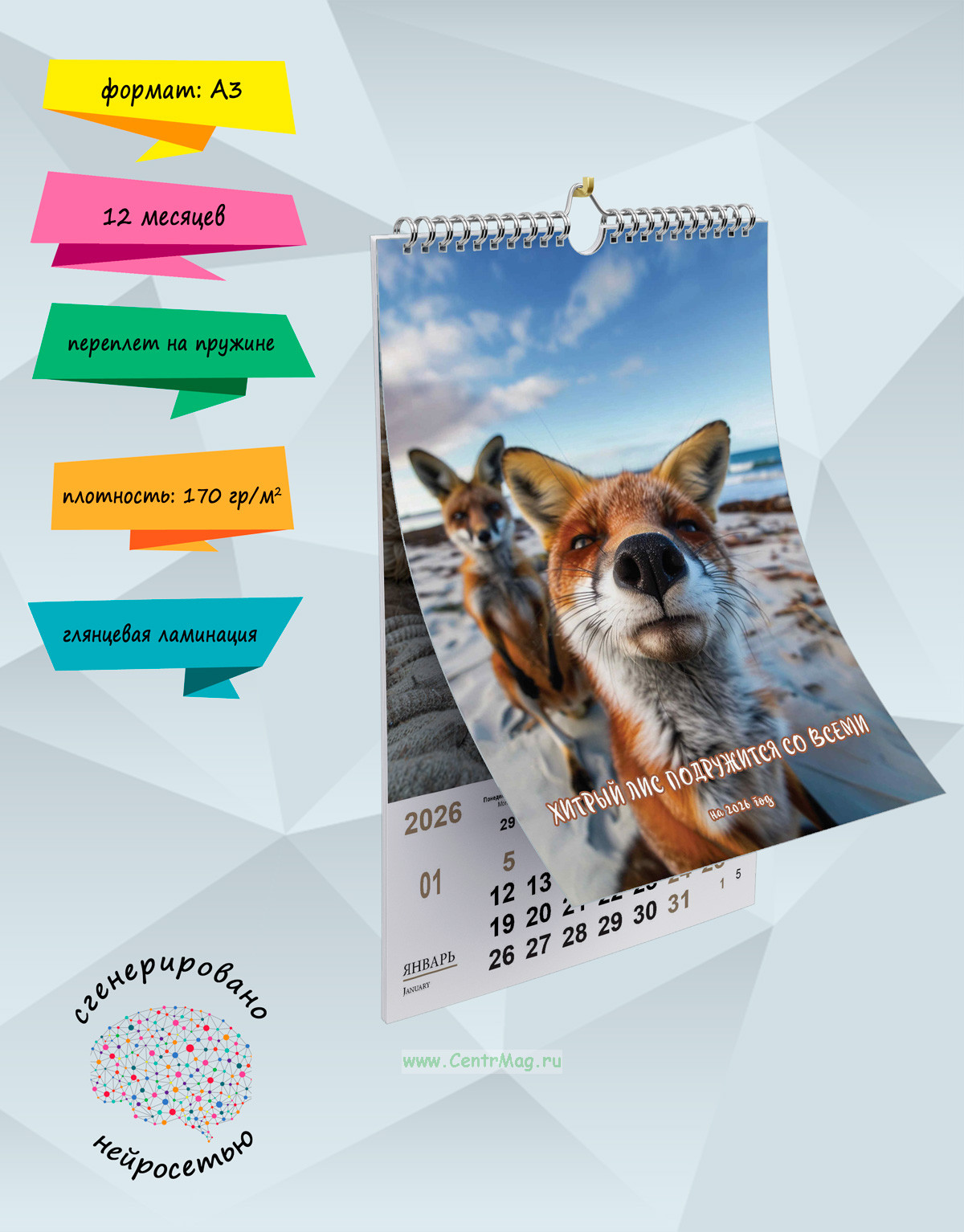 Календарь содержит восхитительные изображения лиса и его похождений, сгенерированные с помощью нейросети. Календарь будет отличным подарком для ваших родных, друзей, знакомых, коллег или даже для себя.
