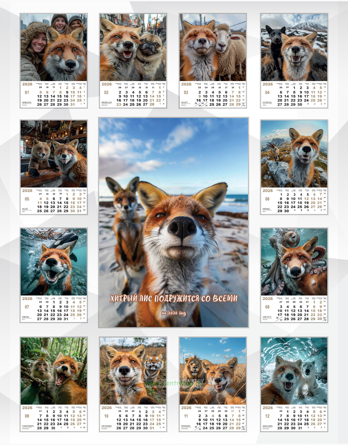 Календарь настенный, перекидной "Хитрый лис подружится со всеми" на 2026 год