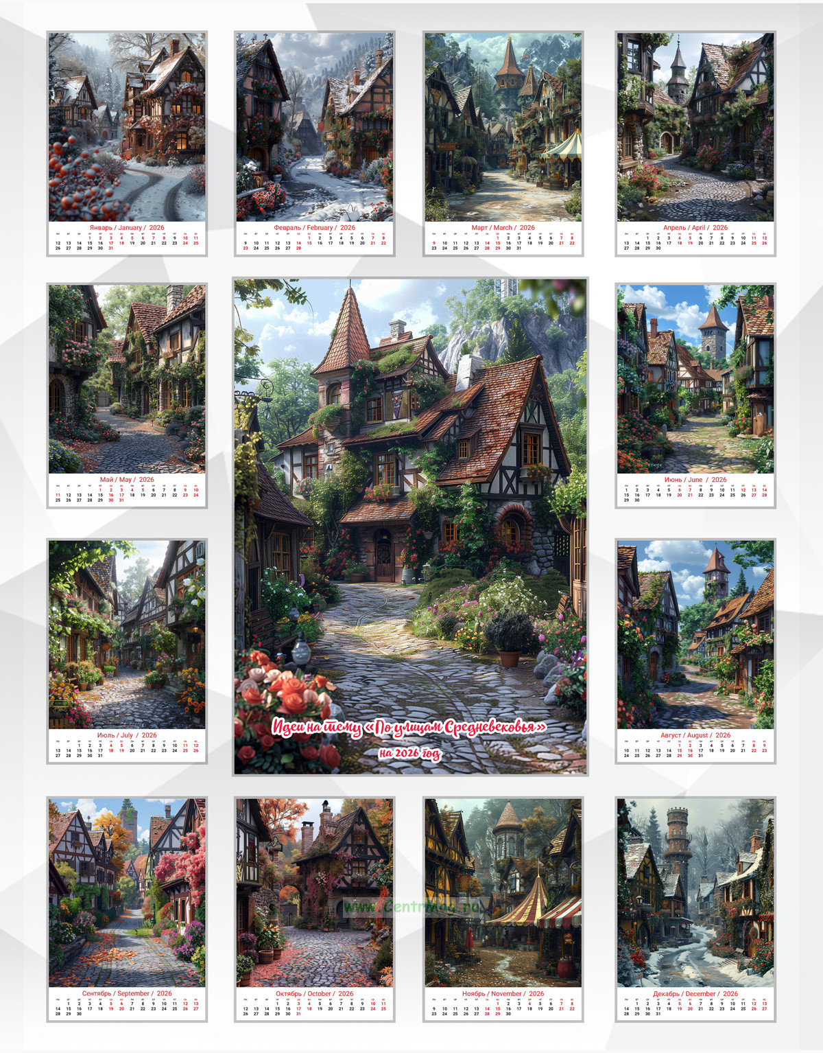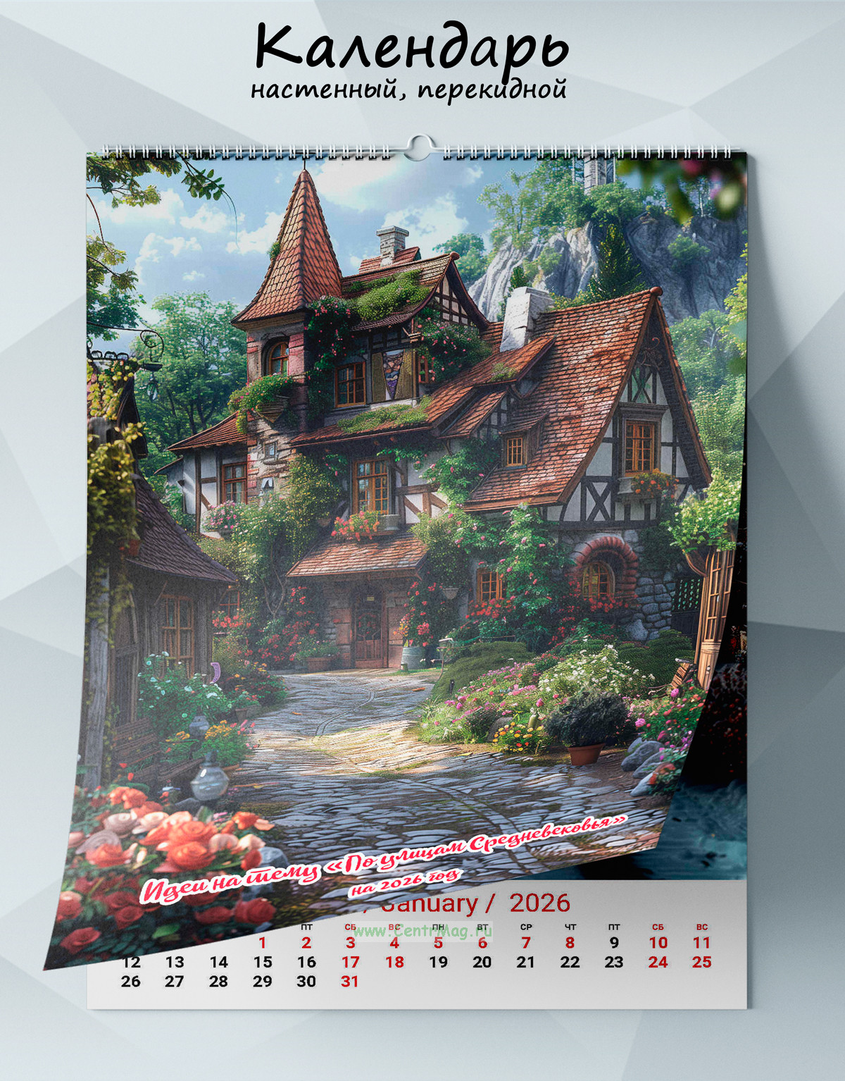 Календарь настенный, перекидной "Идеи на тему "По улицам Средневековья"" на 2026 год