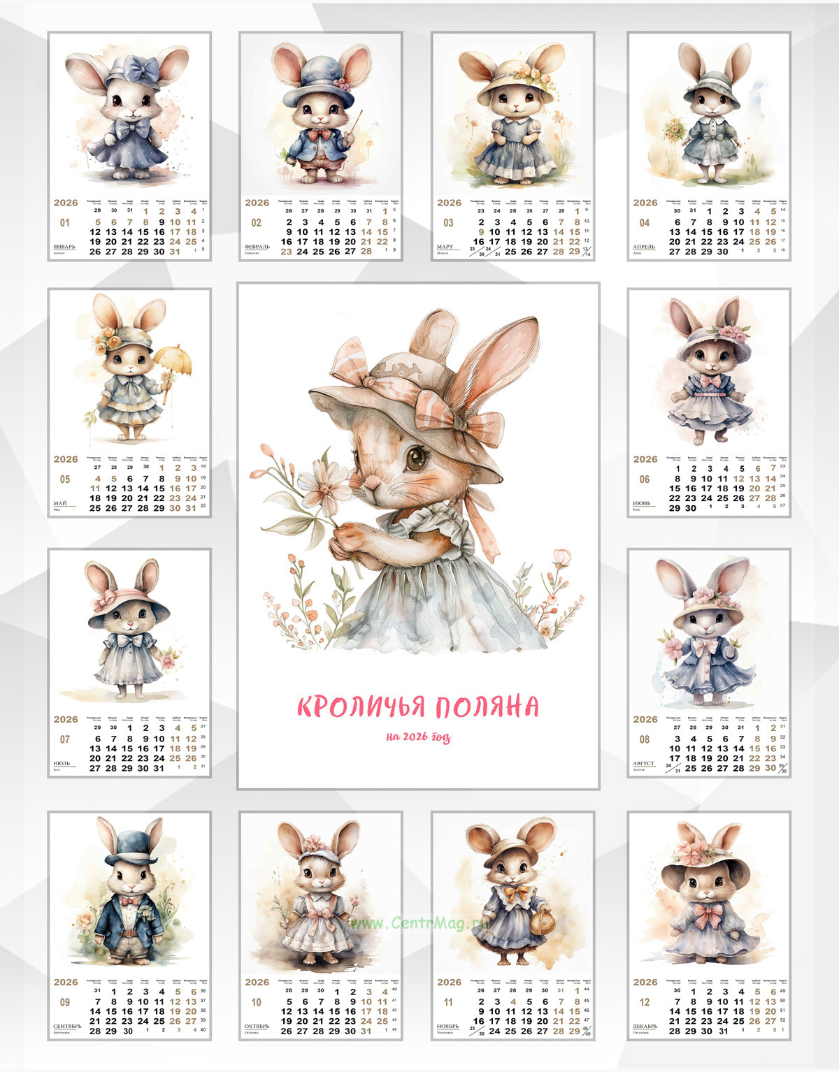 Календарь настенный, перекидной "Кроличья поляна" на 2026 год