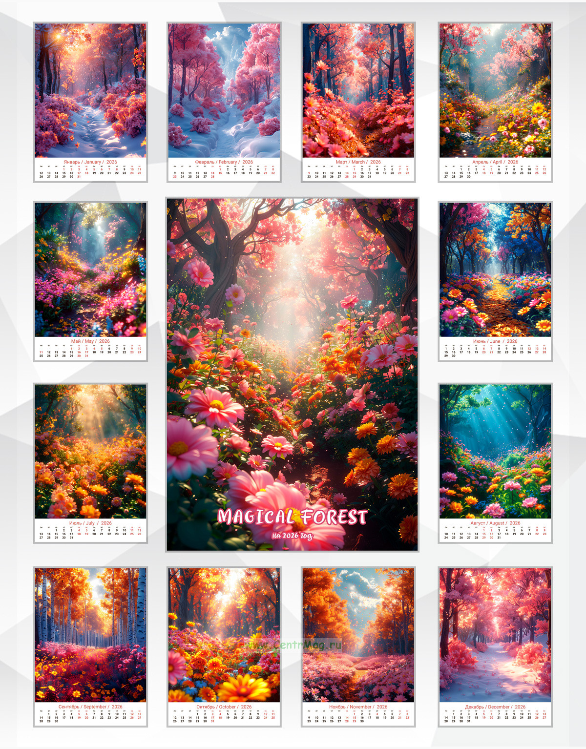 Календарь содержит завораживающие изображения леса в разную пору года, сгенерированные с помощью нейросети. Календарь будет отличным подарком для ваших родных, друзей, знакомых, коллег или даже для себя.