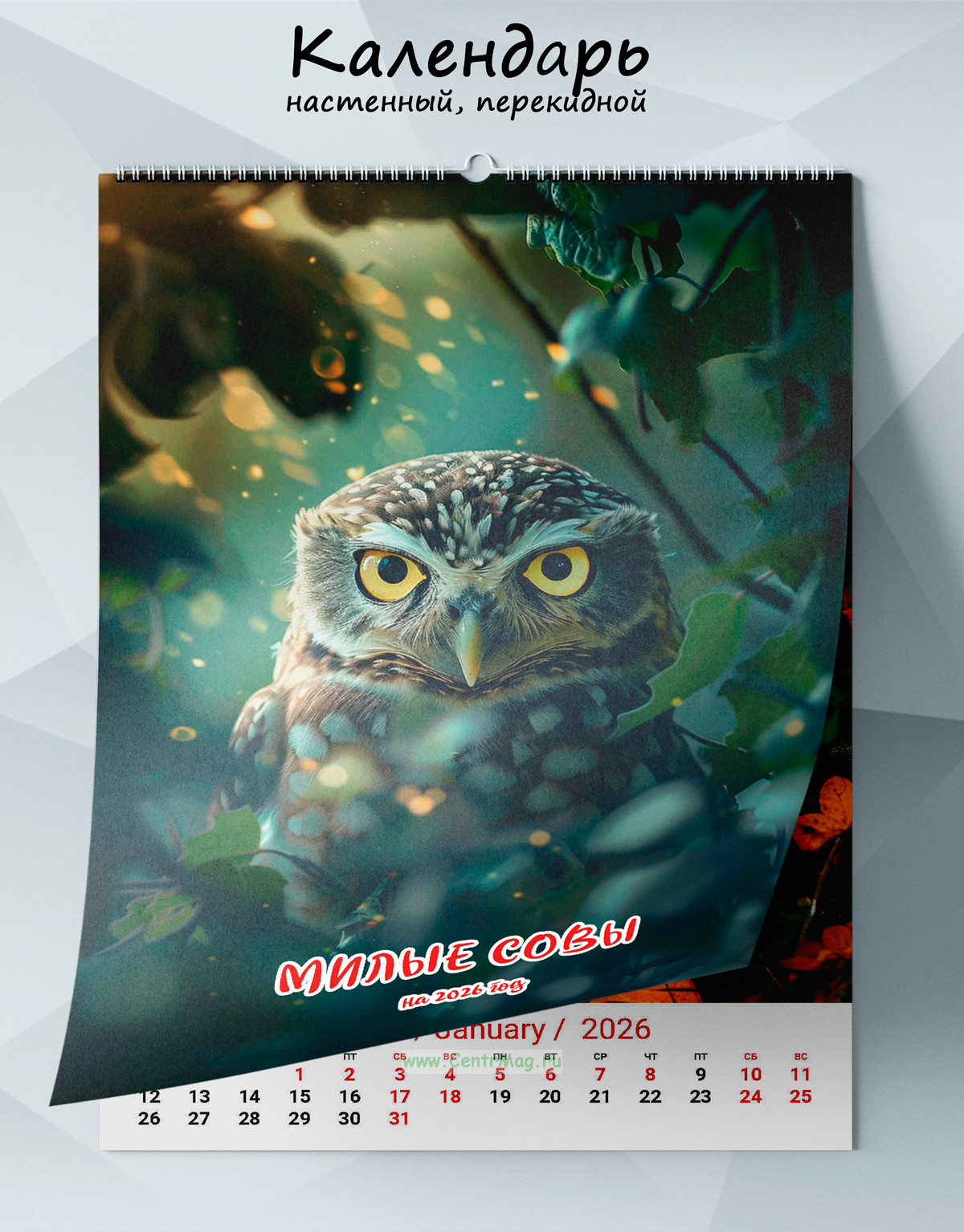 Календарь настенный, перекидной "Милые совы" на 2026 год