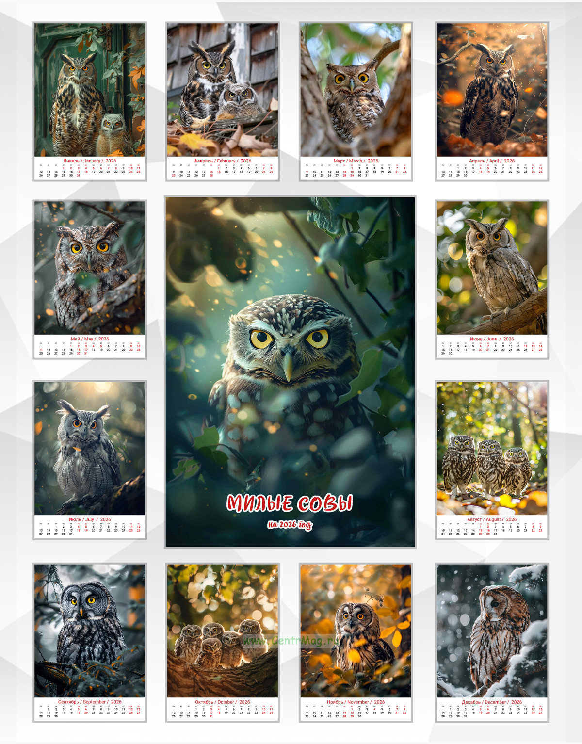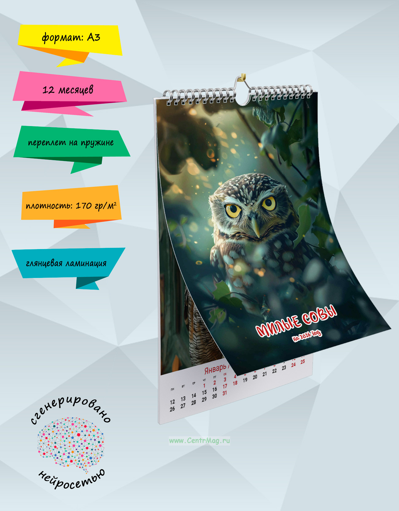 Календарь содержит изображения милых сов в волшебном загадочном лесу, сгенерированные с помощью нейросети. Календарь будет отличным подарком для ваших родных, друзей, знакомых, коллег или даже для себя.