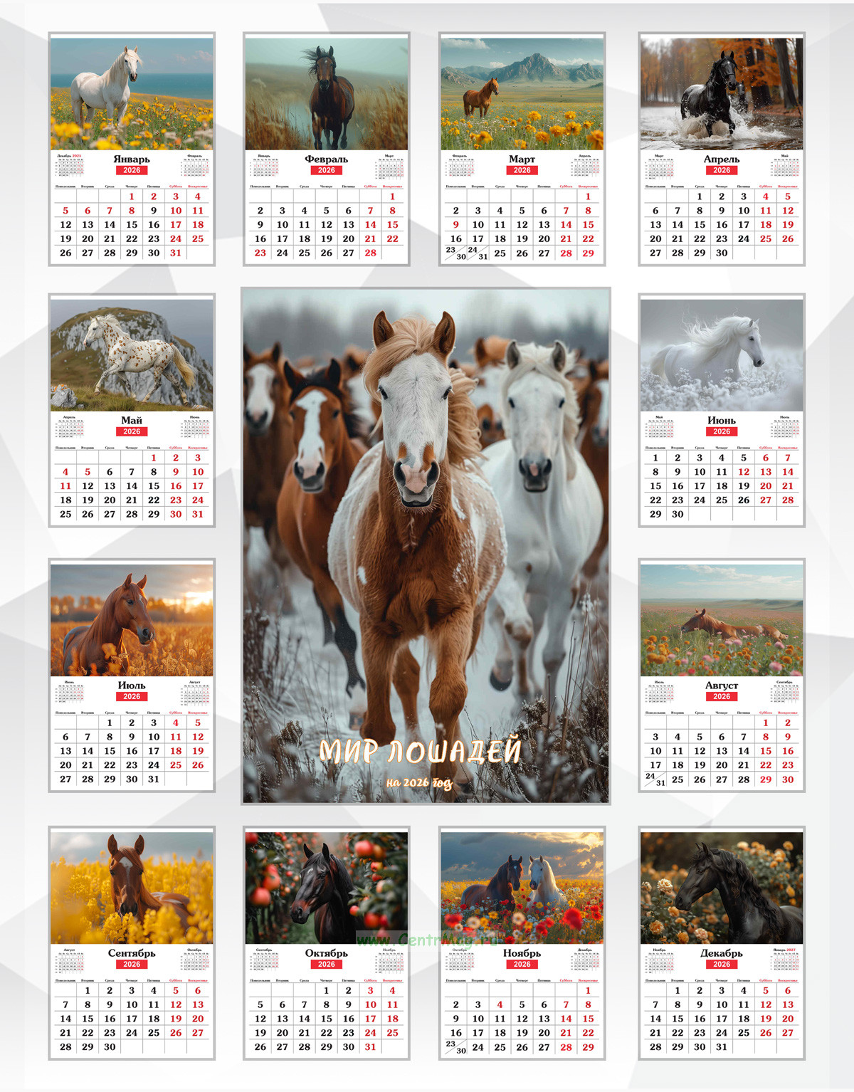 Календарь настенный, перекидной "Мир лошадей" на 2026 год