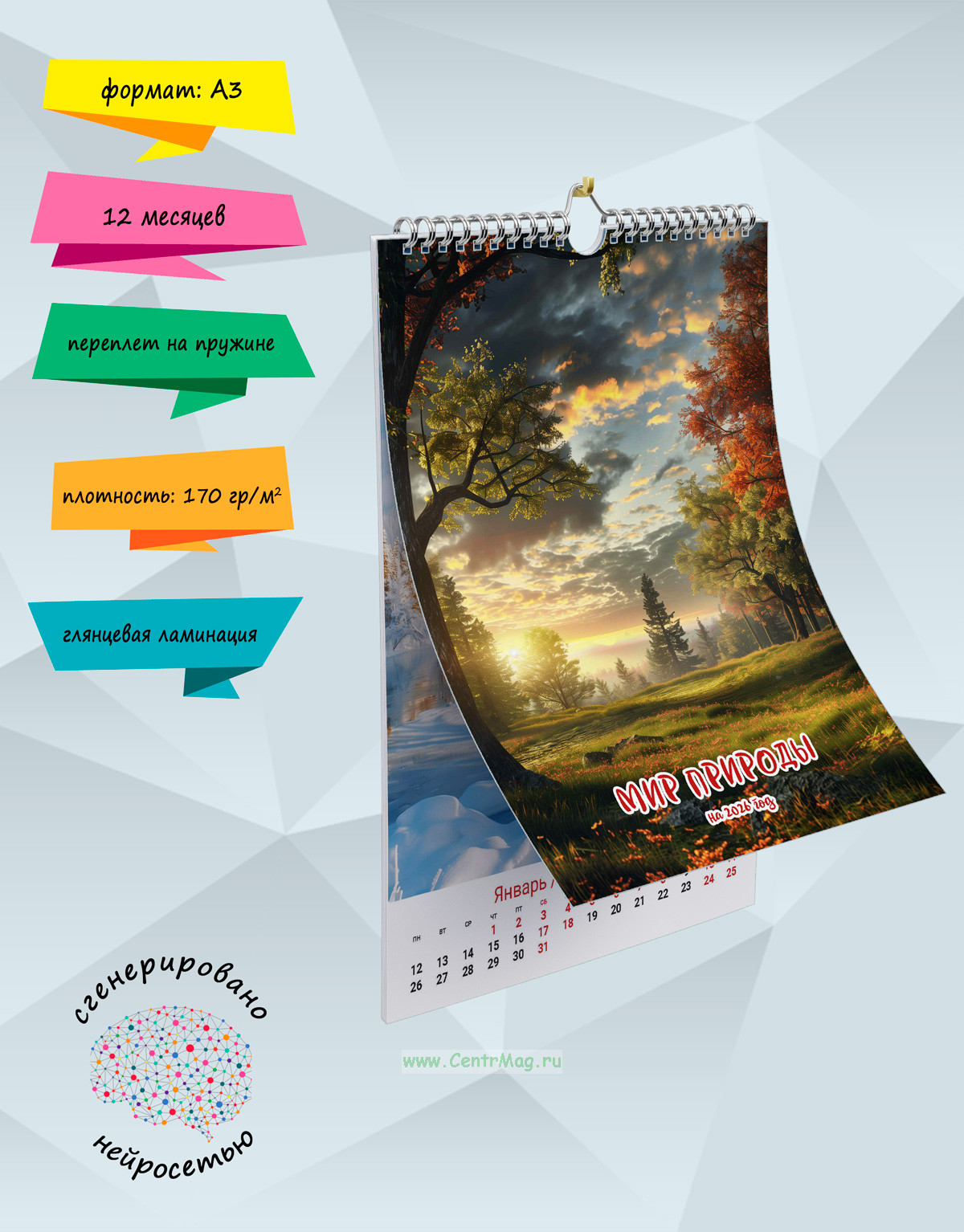 Календарь содержит невероятные иллюстрации живой природы, сгенерированные с помощью нейросети. Календарь будет отличным подарком для ваших родных, друзей, знакомых, коллег или даже для себя.