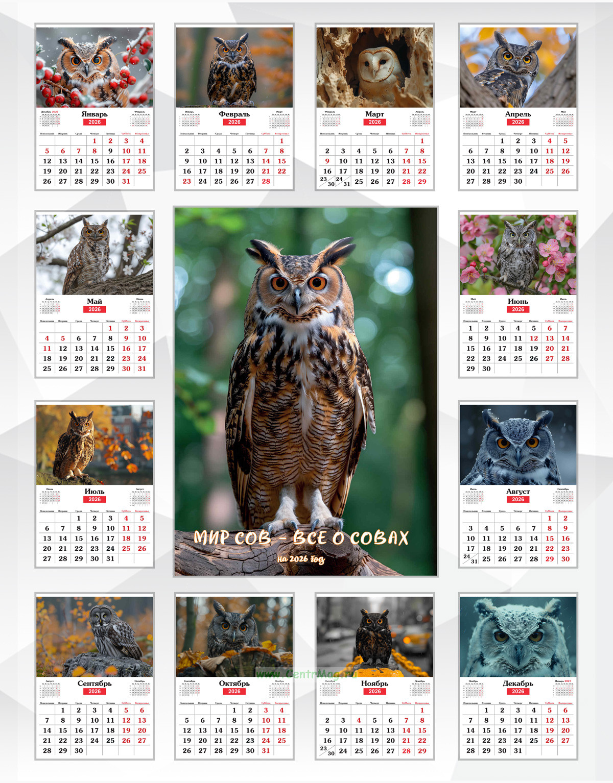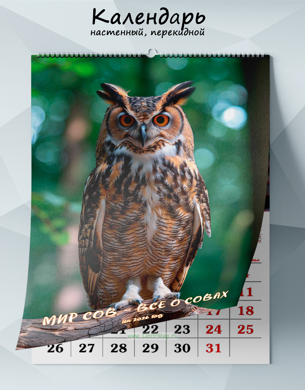 Календарь настенный, перекидной "Мир сов – все о совах" на 2026 год