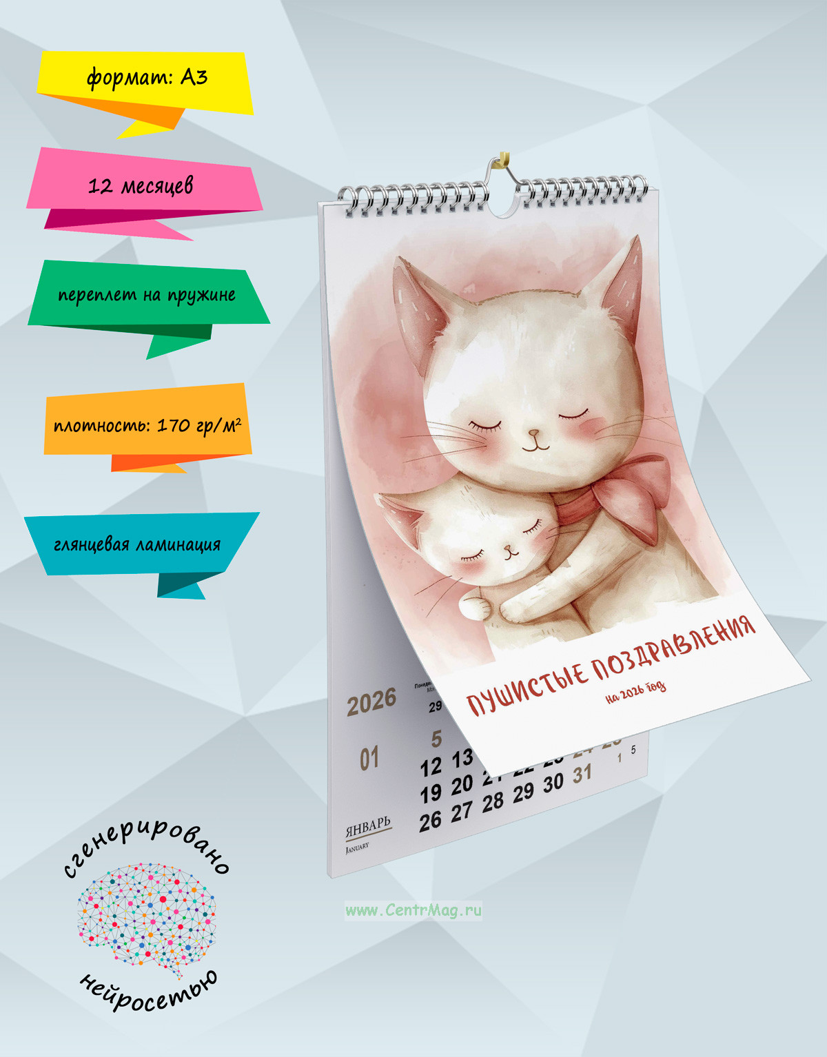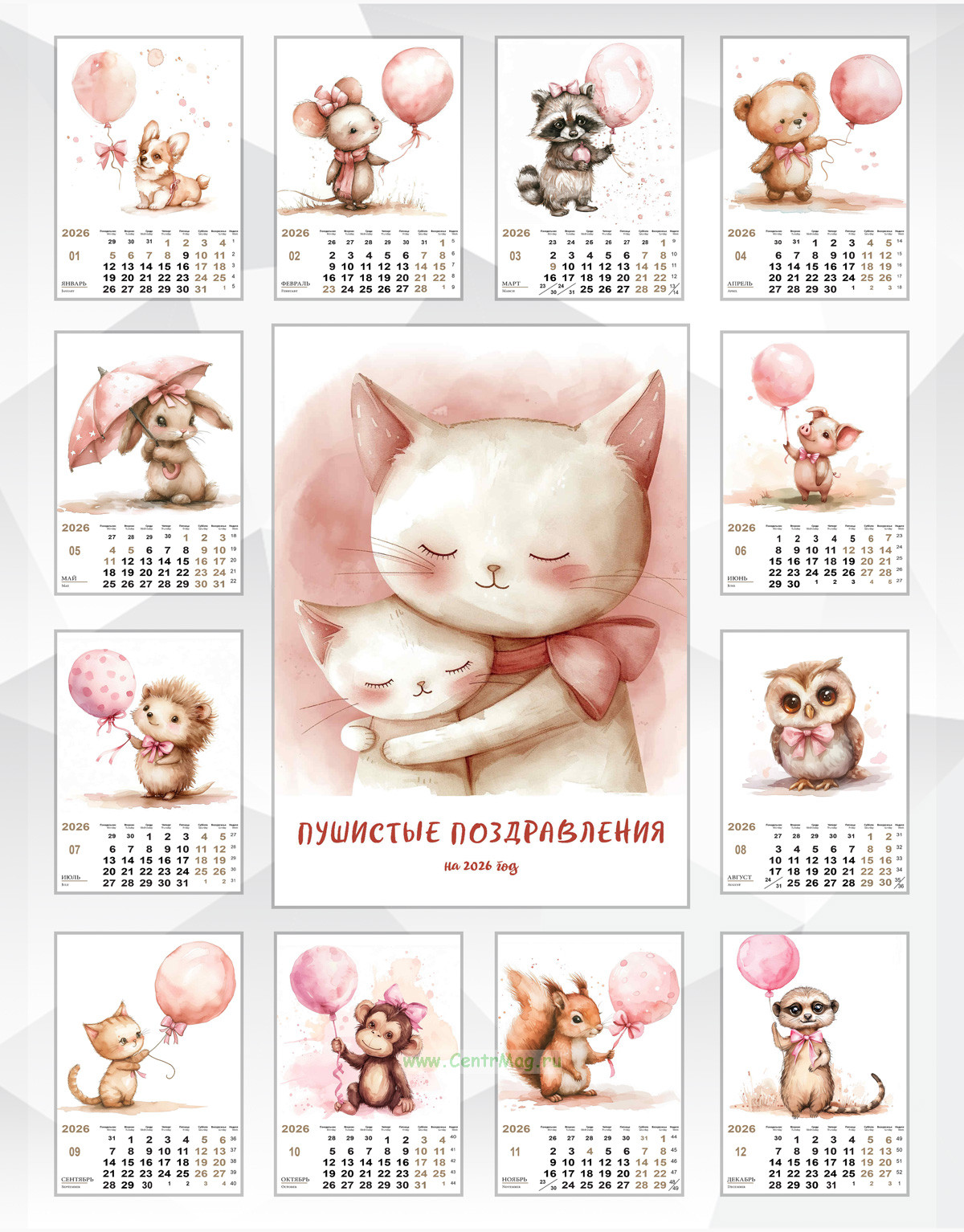 Календарь настенный, перекидной "Пушистые поздравления" на 2026 год