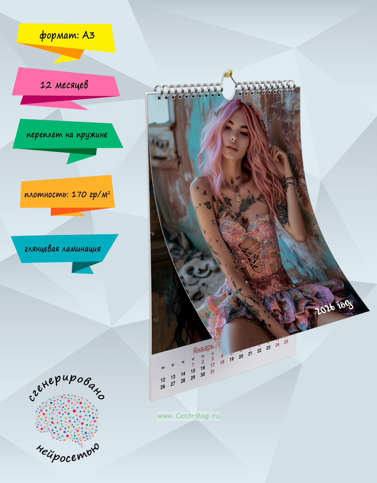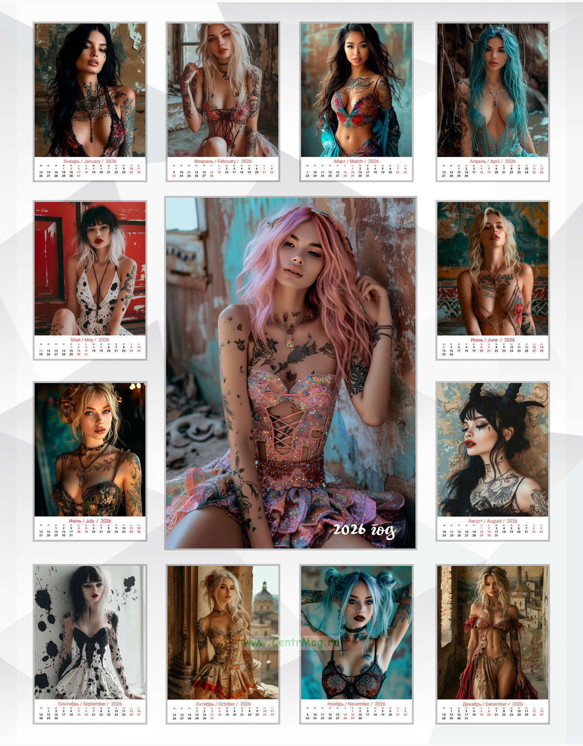 Календарь содержит изображения прекрасных девушек в татуировках, сгенерированные с помощью нейросети. Календарь будет отличным подарком для ваших родных, друзей, знакомых, коллег или даже для себя.