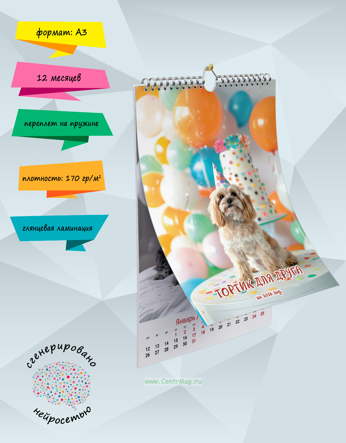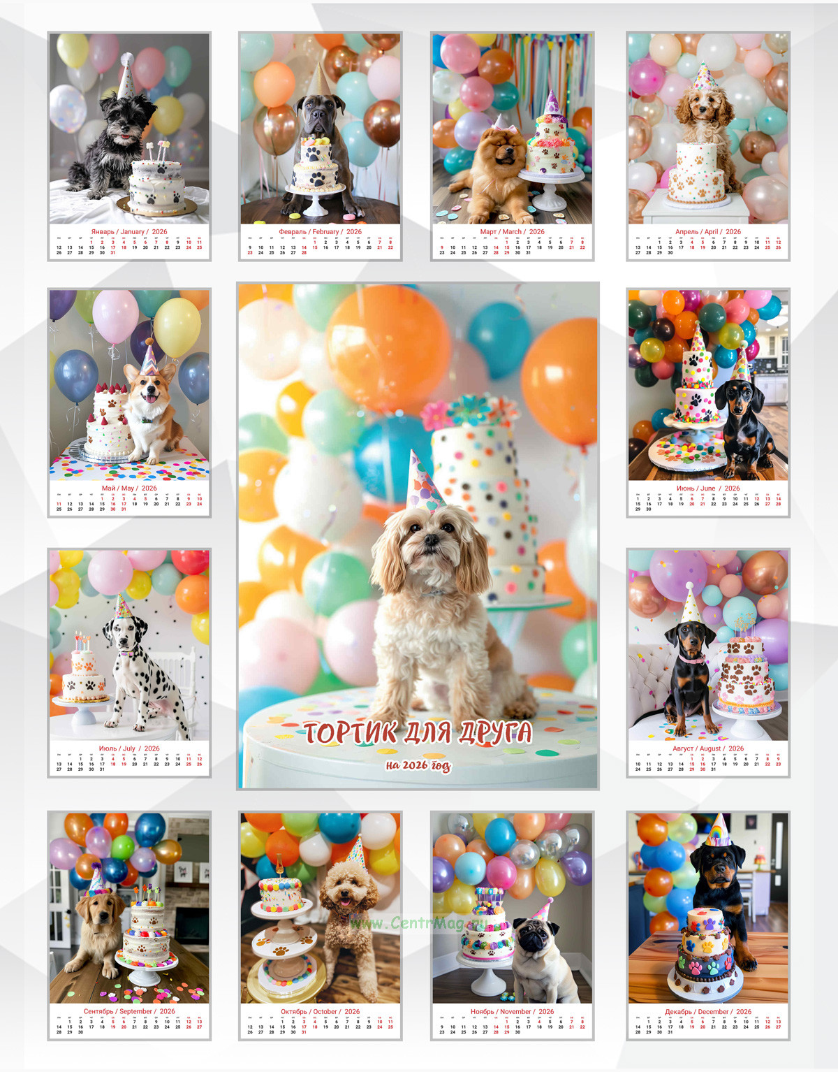 Календарь содержит изображения песиков-именинников, ведь так приятного отпраздновать день рождение такого преданного друга. Изображения сгенерированы с помощью нейросети. Календарь будет отличным подарком для ваших родных, друзей, знакомых, коллег или даже для себя.