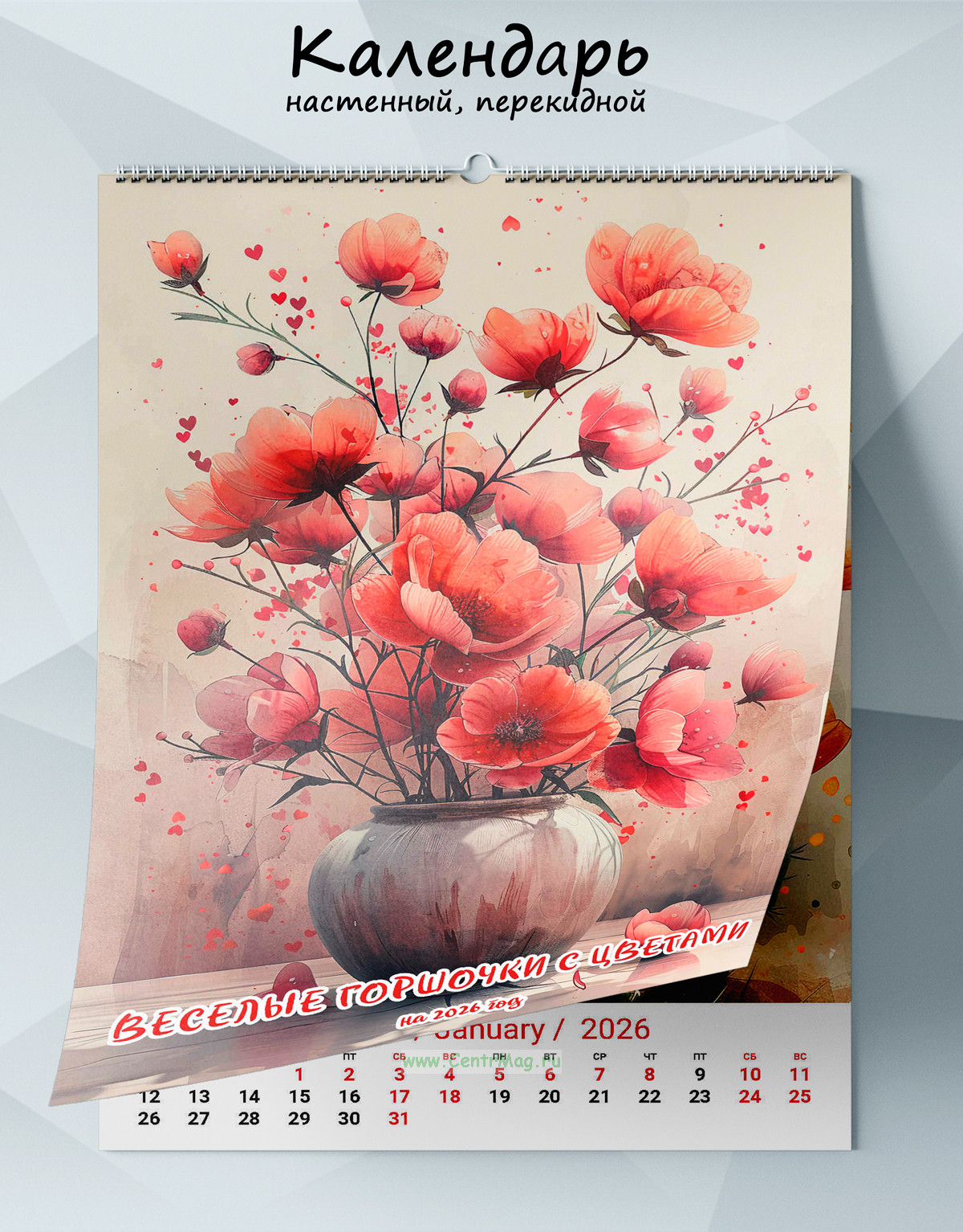 Календарь настенный, перекидной "Веселые горшочки с цветами" на 2026 год