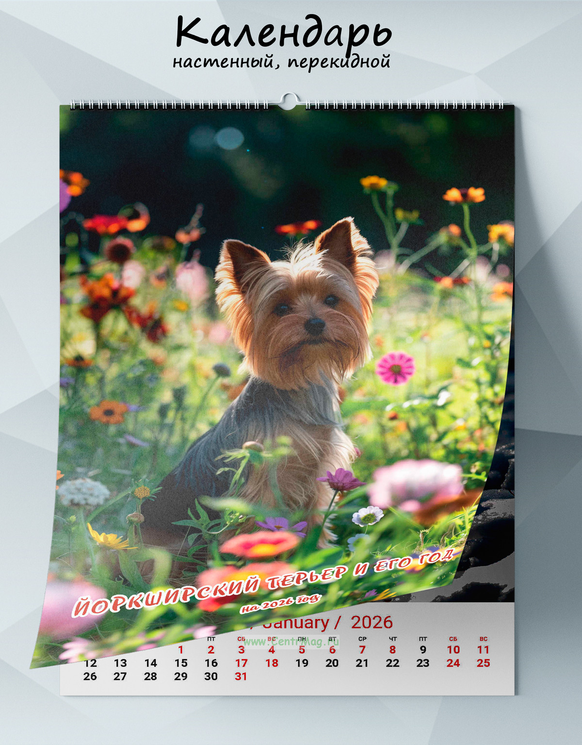 Календарь настенный, перекидной "Йоркширский терьер и его год" на 2026 год