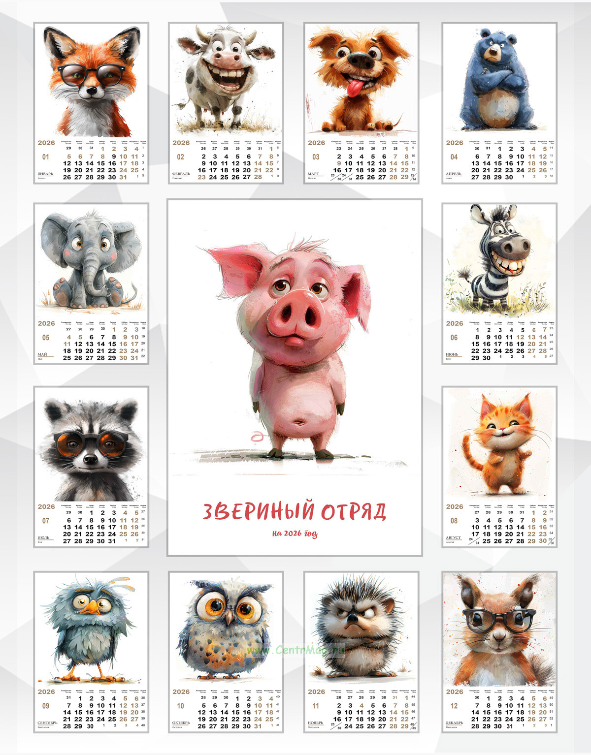 Календарь настенный, перекидной "Звериный отряд" на 2026 год