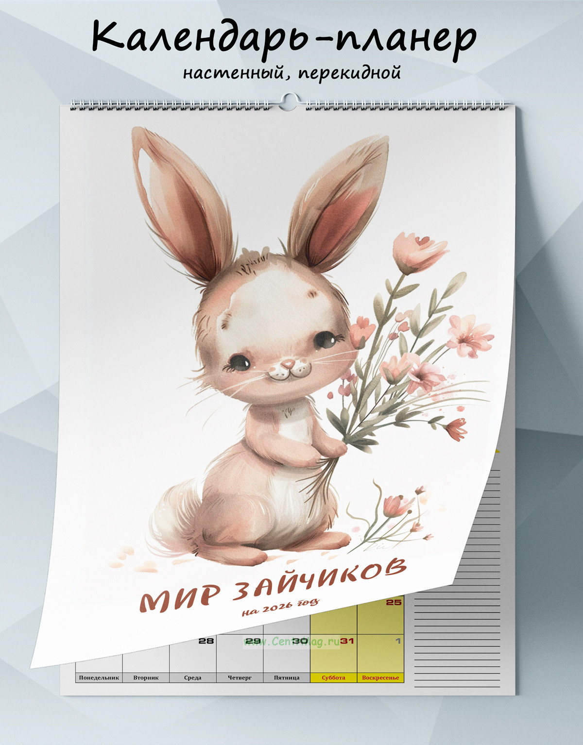 Календарь-планер настенный, перекидной "Мир зайчиков" на 2026 год