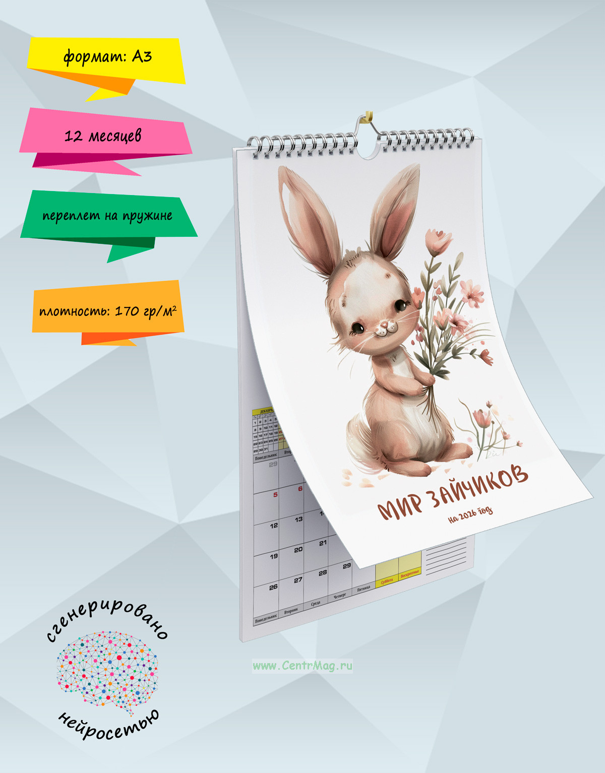 Календарь содержит изображения милых зайчиков, занятых своими делами, сгенерированные с помощью нейросети. Календарь будет отличным подарком для ваших родных, друзей, знакомых, коллег или даже для себя.