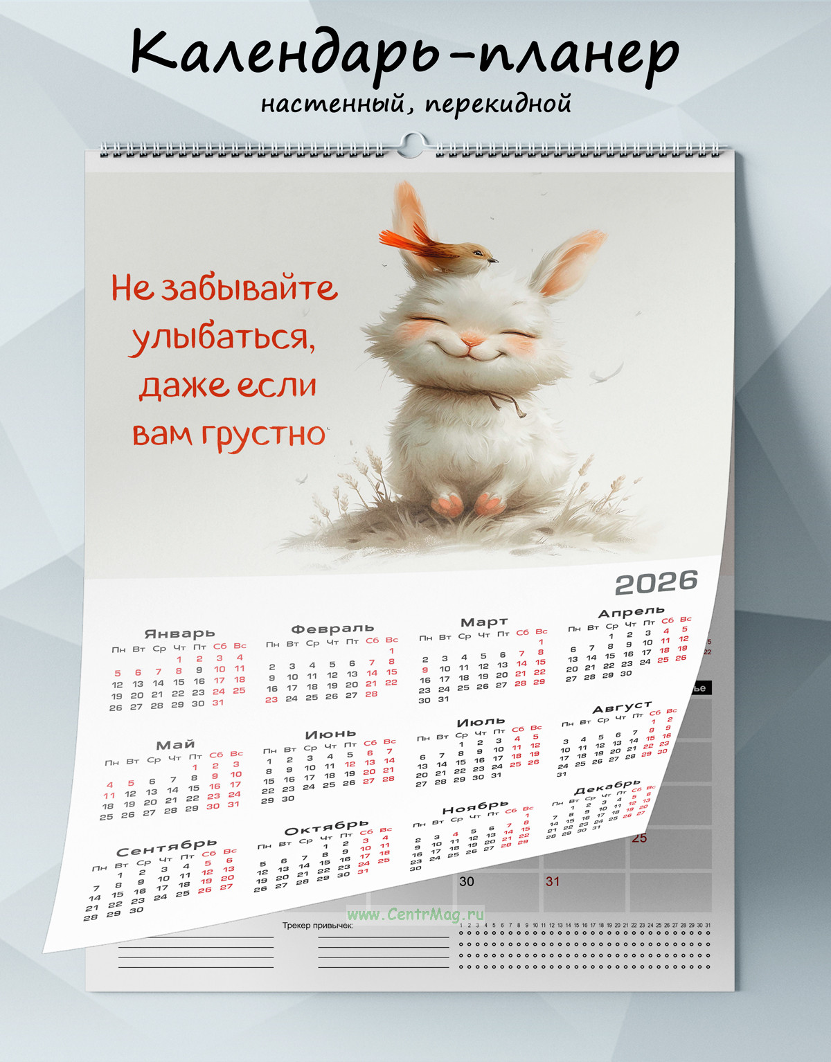 Календарь-планер настенный, перекидной "Не забывайте улыбаться, даже если вам грустно" на 2026 год