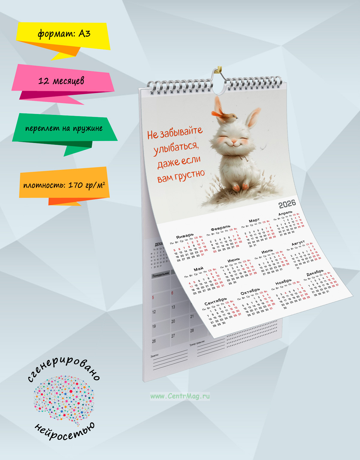Календарь-планер отличный помощник во всех делах, не даст забыть о важном деле, милые изображения зайчиков, сгенерированные с помощью нейросети, помогут в этом. Календарь будет отличным подарком для ваших родных, друзей, знакомых, коллег или даже для себя.