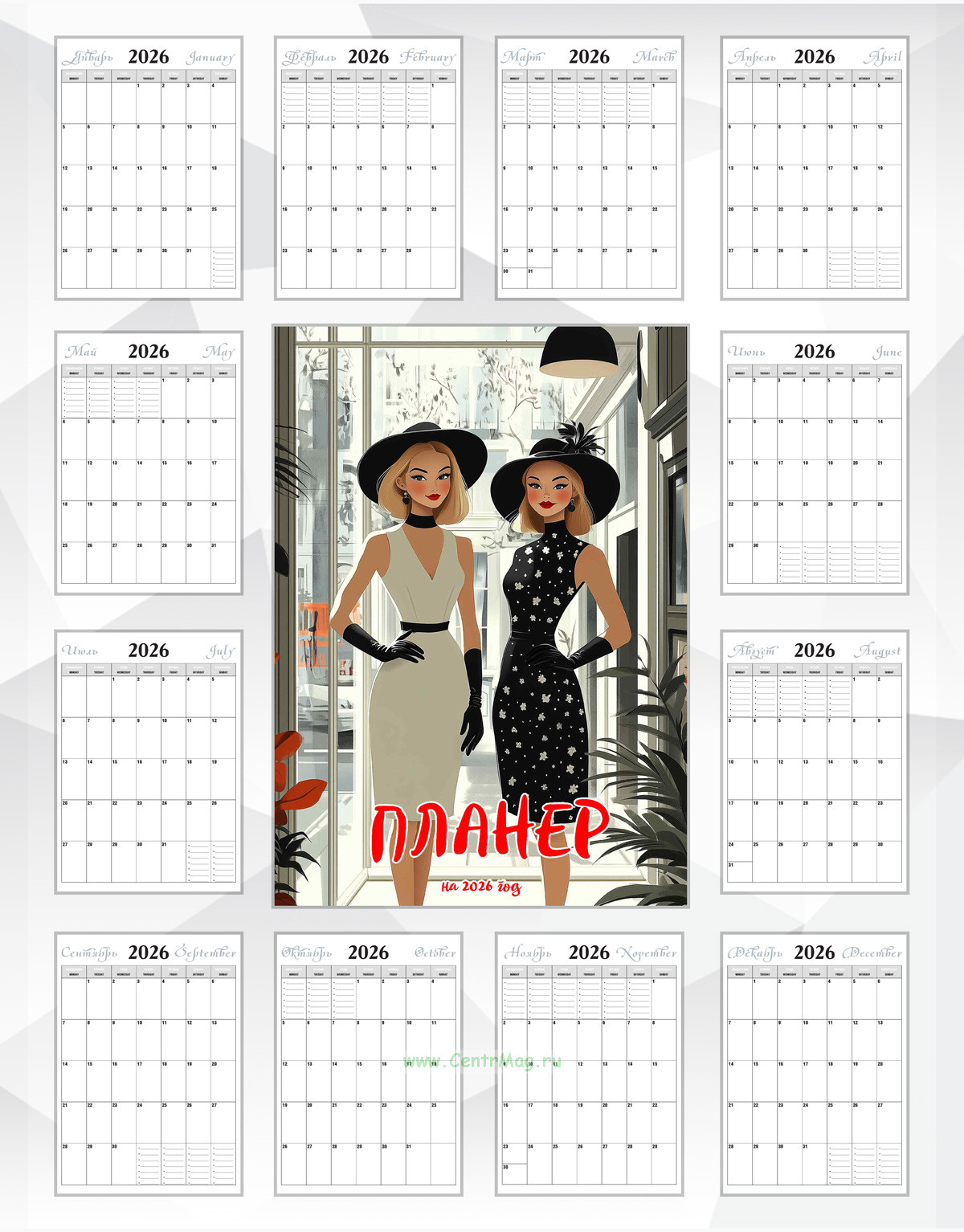 Календарь-планер настенный, перекидной "Fashion girl" на 2026 год